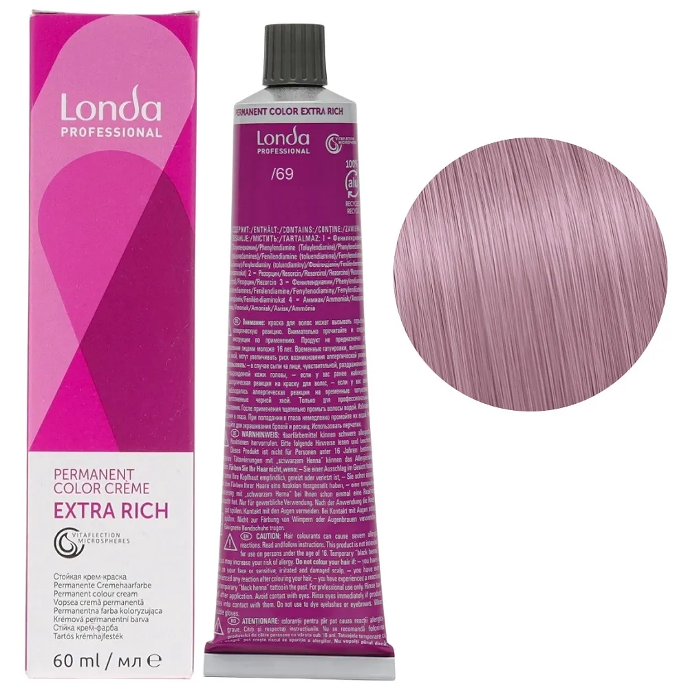 Стійка крем-фарба з мікросферами Vitaflection, які відбивають світло, для стійкого, насиченого життєвою енергією кольору і виняткового блиску волосся. Забезпечує тривалий результат – завдяки спеціальній технології фарба глибоко проникає у структуру волосся, забезпечує інтенсивний колір до 8 тижнів. Має широку палітру понад 100 відтінків для будь-якого типу та кольору волосся. Особливості продукту: /69 пастельно-фіолетовий сандре мікстон Стійка фарба для волосся, 60 мл Permanent Color Londa Professional Фарба має престижну систему ароматів з високоякісним маскуванням аміаку, що робить фарбування більш приємним досвідом для вашого клієнта. Застосування: /69 пастельно-фіолетовий сандре мікстон Стійка фарба для волосся, 60 мл Permanent Color Londa Professional Змішати фарбу Permanent Color з окислювачем Permanent Hair Colour Developer Londacolor 3%, 6%, 9% або 12%. Пропорції змішування: Час витримки залежить від бажаного результату. Важливо! Продукт для професійного застосування. Уважно ознайомтесь з інструкцією.Стійка фарба для волосся Permanent Color Londa Professional