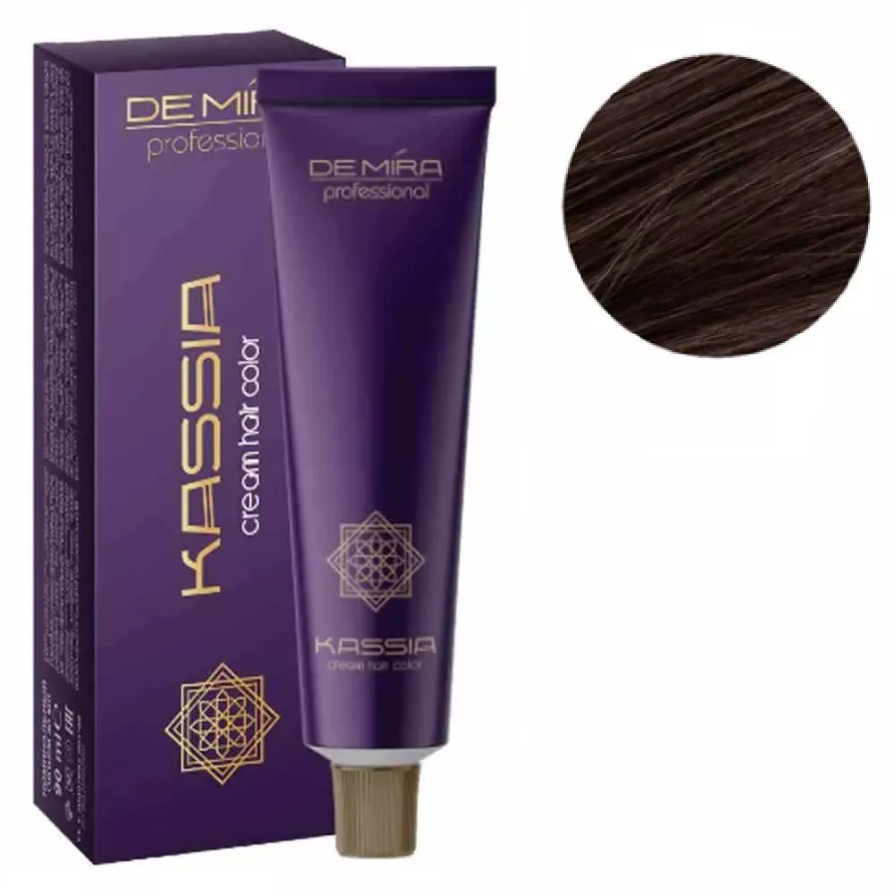 KASSIA DEMIRA Professional - це стійка крем-фарба для волосся професійного рівня, яка забезпечує насичений колір, щільність і блиск. Формула з інноваційним комплексом DePLEX, олією мірри, кориці та колагеном акації одночасно фарбує та зміцнює волосся по всій довжині. Засіб підходить для фарбування будь-якого типу волосся, у тому числі ослабленого чи фарбованого раніше. Фарба не лише створює глибокий колір, а й покращує текстуру волосся завдяки доглядовим компонентам. Активна формула DePLEX: 4/37 середньо-каштановий золотисто-мідний Крем-фарба для волосся перманентна, 90мл Cream hair color KASSIA DEMIRA Professional Особливості продукту: 4/37 середньо-каштановий золотисто-мідний Крем-фарба для волосся перманентна, 90мл Cream hair color KASSIA DEMIRA Professional Застосування: 4/37 середньо-каштановий золотисто-мідний Крем-фарба для волосся перманентна, 90мл Cream hair color KASSIA DEMIRA Professional Пропорції змішування 1:1,5 з Кремом-окислювачем ACTIVOL DEMIRA Professional . Концентрація обирається в залежності від бажаного результату фарбування. Засіб призначений для професійного використання. Уважно ознайомтесь з інструкцією.Крем-фарба для волосся перманентна Cream hair color KASSIA DEMIRA Professional