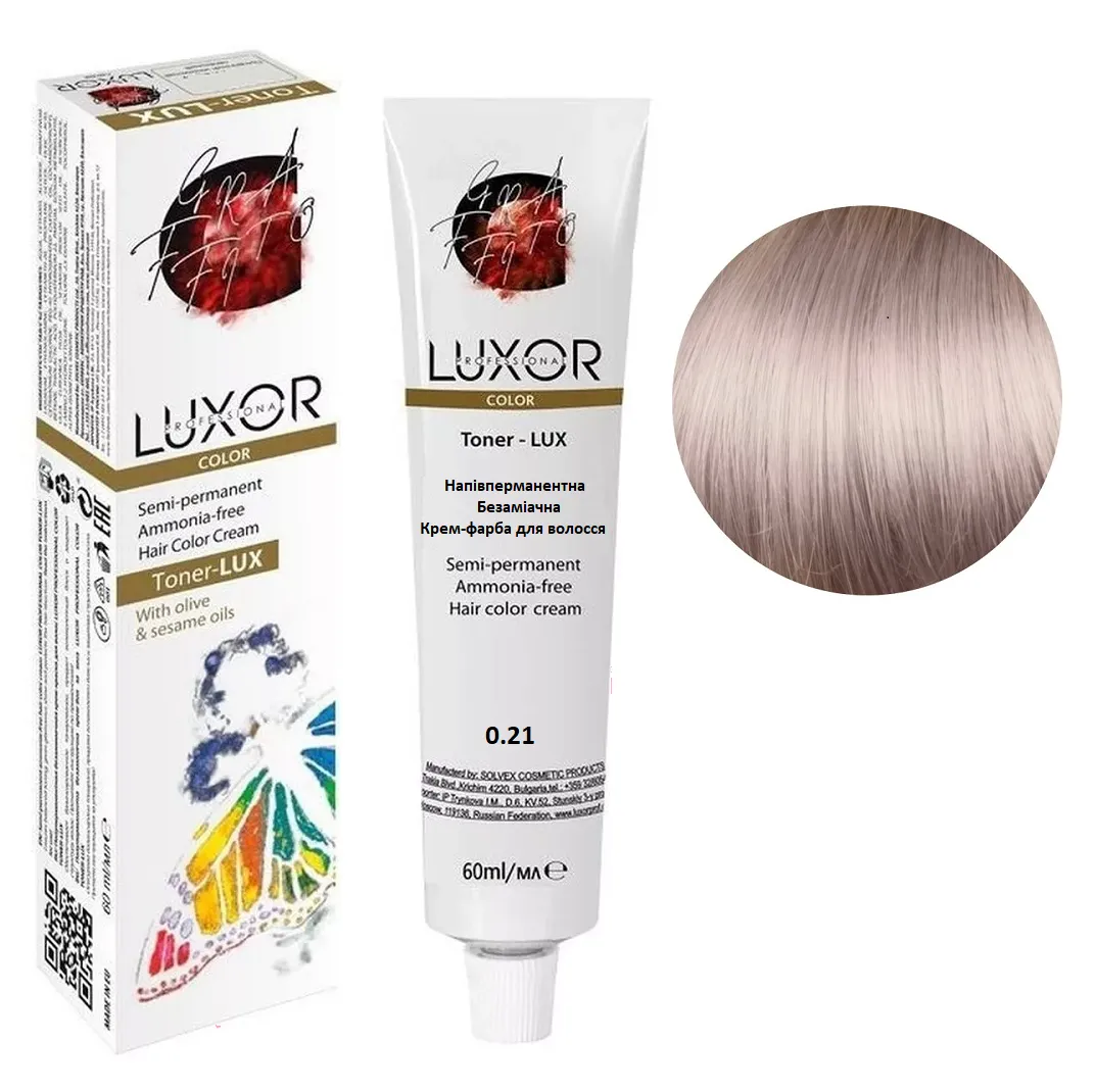 0/21 Тонувальна безаміачна крем-фарба для волосся, 60 мл Toner - LUX Color LUXOR Professional