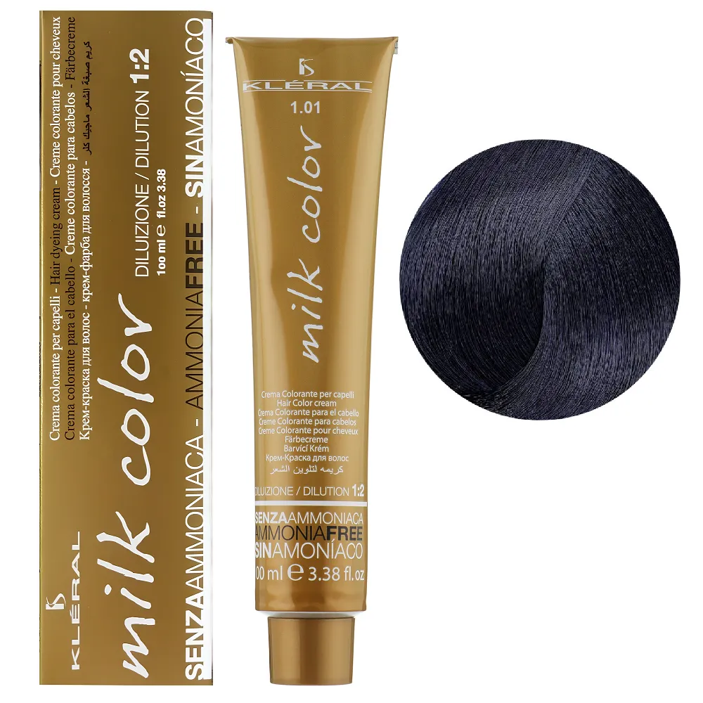 Безаміачна фарба Milk Color, розроблена італійською компанією Kleral System, представлена більше ніж 40 відтінками. Прекрасно забарвлює волосся, у тому числі і сиве (якщо сивини не більше 50%) у близькі до натуральних кольорів. Завдяки своєму щадному складу і компонентам, що доглядають, не пошкоджує структуру волосся, надає їм блиск і м`якість. Milk Color ідеально підходить для пошкодженого волосся. Тюбик містить 100 мл фарби та розрахований на 2 повні нанесення. Рекомендований окислювач - 20-vol стабілізований перекис водню. Для збільшення освітлювальної дії, використовуйте стабілізований перекис водню в 30- або 40-vol емульсії. Особливості продукту: 1/01 Чорно-синій Крем-фарба для волосся перманентна без аміаку, 100 мл Milk Color KLERAL System Застосування: 1/01 Чорно-синій Крем-фарба для волосся перманентна без аміаку, 100 мл Milk Color KLERAL System Продукт призначений для професійного використання. Уважно ознайомтесь з інструкцією.Крем-фарба для волосся перманентна без аміаку Milk Color KLERAL System