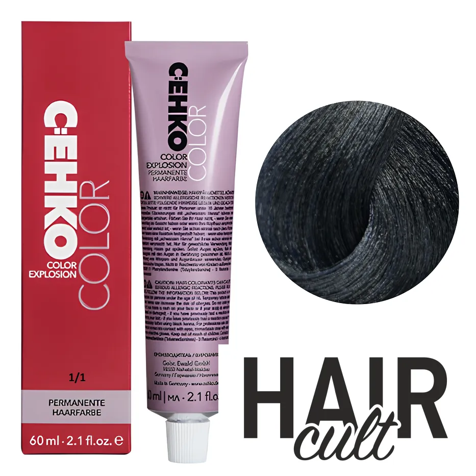 1/1 Синьо-чорний Стійка перманентна крем-фарба для волосся, 60 мл Permament Hair Color EXPLOSION C:EHKO