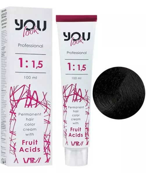 1 чорний Крем-фарба стійка з фруктовими кислотами, 100 мл You look Professional