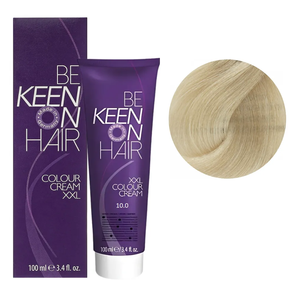 Краще співвідношення ціни та якості! Colour Cream XXL KEEN фарба німецького виробника завоювала визнання професійних майстрів і покупців по всій Європі. Палітра налічує понад 116 відтінків для креативної комбінації кольорів. Всі тони поєднуються між собою, їх можна змішувати, створюючи свій неповторний стиль. Кремоподібна текстура фарби легко наноситься, не тече і забезпечує рівномірний результат. Особливості продукту: 10/0 ультрасвітлий блондин Стійка крем-фарба для волосся, 100 мл Colour Cream XXL KEEN Активні компоненти: гідролізовані молочні протеїни піклуються про волосся під час фарбування зберігають необхідну вологість, надає волоссю блиску та пружності. Застосування: 10/0 ультрасвітлий блондин Стійка крем-фарба для волосся, 100 мл Colour Cream XXL KEEN Змішати в неметалевому посуді крем-фарбу Colour Cream XXL KEEN із крем-окислювачем. Фарбуючу суміш наносити на сухе чисте волосся. Вибір концентрації крем-окислювача 1,9%, 3%, 6%, 9% або 12% залежить від бажаного рівня освітлення. При використанні додаткового джерела тепла час витримки зменшується вдвічі. Пропорції змішування: 10/0 ультрасвітлий блондин Стійка крем-фарба для волосся, 100 мл Colour Cream XXL KEEN Час витримки: 35 хвилин. Продукт призначений для професійного використання. Уважно ознайомтесь з інструкцією.Стійка крем-фарба для волосся Colour Cream XXL KEEN