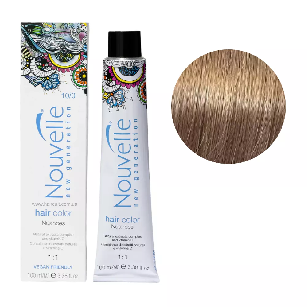 10/0 теплий натуральний платиновий блонд Фарба для волосся перманентна, 100мл Permanent Hair Color Nouvelle