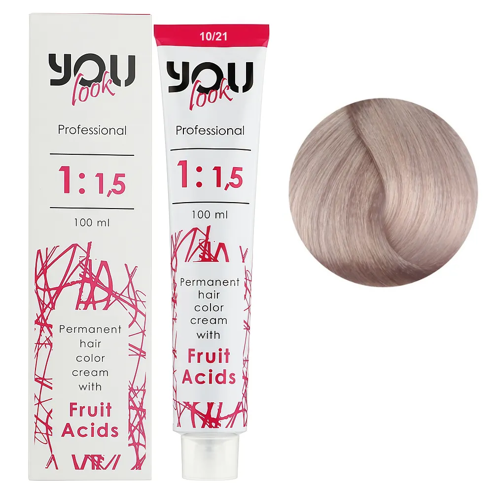 Стійка фарба для волосся бренду You look Professional – це можливість отримати розкішний відтінок і водночас не отримати ушкодження у вигляді сухості, ламкості та посічених кінчиків. Багата палітра відтінків і спеціальна стійка формула відкриють для вас нові можливості для експериментів з різними кольорами. Засіб збагачений фруктовими кислотами, які заспокоюють шкіру голови та запобігають появі пошкоджень структури під час фарбування. Після застосування фарби ваше волосся буде ідеальним, насиченим, яскравим і блискучим. Особливості продукту: 10/21 екстрасвітлий блондин перламутрово-попелястий Крем-фарба стійка з фруктовими кислотами, 100 мл You look Professional Застосування: 10/21 екстрасвітлий блондин перламутрово-попелястий Крем-фарба стійка з фруктовими кислотами, 100 мл You look Professional Пропорції змішування фарби You look з окислювачем 1,5%, 3%, 6%, 9%, 12% : Час витримки залежить від бажаного результату. Важливо! Продукт для професійного застосування. Уважно ознайомтесь з інструкцією.Крем-фарба стійка з фруктовими кислотами You look Professional