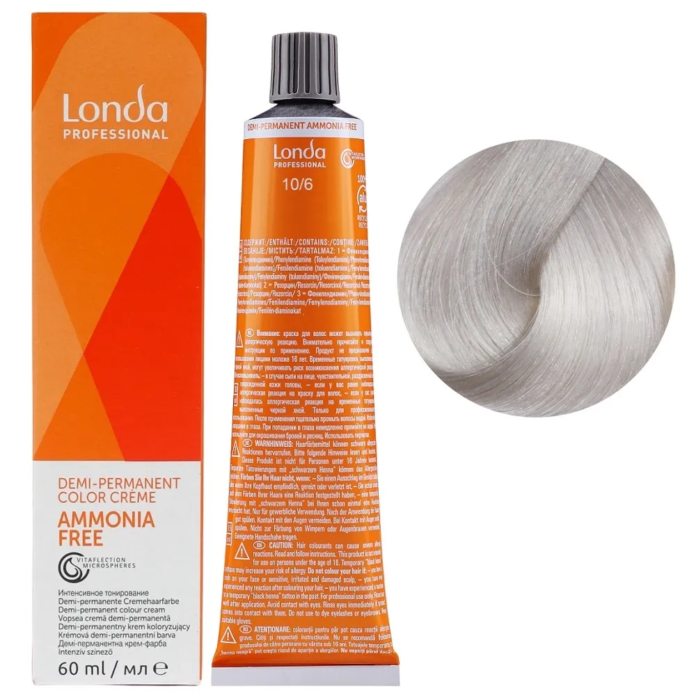 Фарба для інтенсивного тонування без аміаку зі світловідбивними мікросферами Vitaflection створює живе, сяюче волосся з багатовимірним блиском. Demi-Permanent використовує середовище для підлужнення без аміаку та пероксиди низької концентрації, тому прекурсори барвників проникають у волокна волосся менш глибоко. Завдяки цьому структура волосся змінюється менше, ніж при використанні стійких крем-фарб Permanent Color. Особливості продукту: 10/6 яскравий блондин фіолетовий Демі-перманентна фарба без аміаку, 60 мл Demi-Permanent Color Londa Professional Застосування: 10/6 яскравий блондин фіолетовий Демі-перманентна фарба без аміаку, 60 мл Demi-Permanent Color Londa Professional Змішати Demi-Permanent Color з емульсією для інтенсивного тонування Demi-Permanent Emulsion Londacolor 1,9% або 4%, в пропорції 1:2. Час витримки залежить від бажаного результату. Важливо! Продукт для професійного застосування. Уважно ознайомтесь з інструкцією.Демі-перманентна фарба без аміаку Demi-Permanent Color Londa Professional