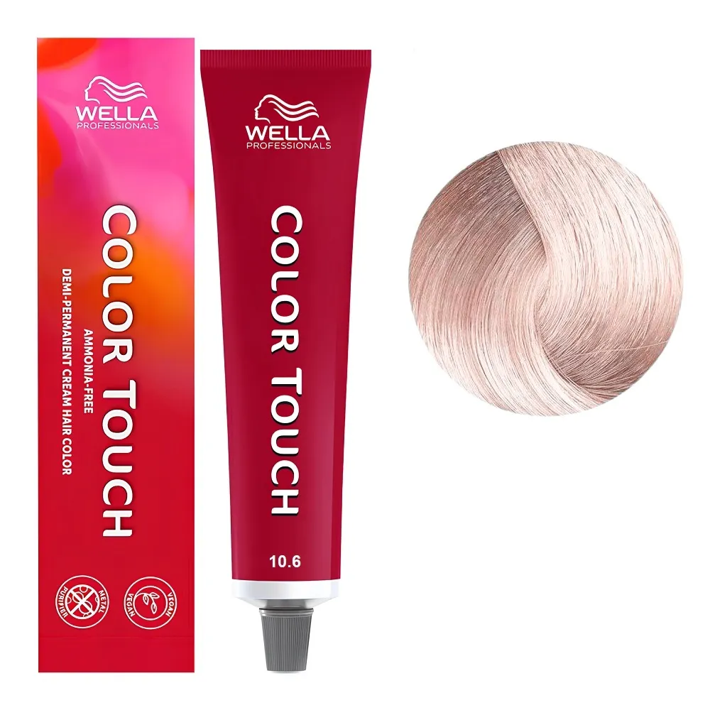 Фарба без аміаку Color Touch - це новий рівень фарбування: багатовимірне тонування волосся. Веганський склад із вмістом до 85% інгредієнтів натурального походження, без аміаку (за винятком Color Touch Plus, що призначена для сивого волосся), робить фарбування максимально делікатним. Особливості продукту: 10/6 дуже яскравий блондин фіолетовий Фарба для тонування волосся без аміаку (Оновлена формула), 60 мл COLOR TOUCH Wella Professionals Усі відтінки базової гами Color Touch можна змішувати між собою. Застосування: 10/6 дуже яскравий блондин фіолетовий Фарба для тонування волосся без аміаку (Оновлена формула), 60 мл COLOR TOUCH Wella Professionals Час витримки: з теплом 15 хвилин, без тепла 20-25 хвилин. Продукт призначений для професійного використання. Уважно ознайомтесь з інструкцією.Тонувальна фарба без аміаку Color Touch Wella Professionals з оновленою веганською формулою