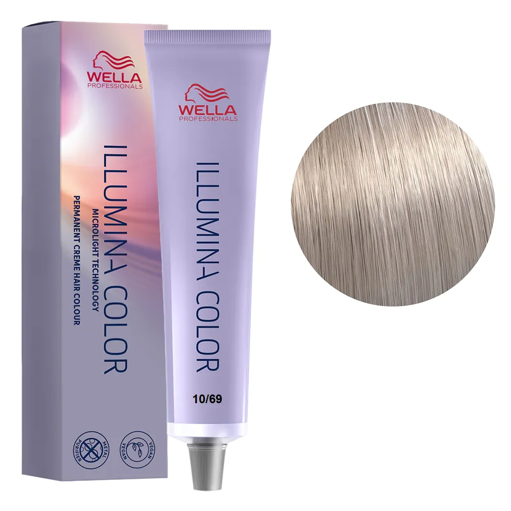 Формула фарби ILLUMINA COLOR заснована на запатентованій технології MICROLIGHT, яка захищає кутикулу волосся та не перевантажує його. Дана технологія обволікає мідні частки на поверхні кутикули, що перешкоджає їх взаємодії з фарбувальної сумішшю і підвищує тим самим захист лускатого шару. Це дозволяє променям світла вільно проникати всередину волосся та надає природним переливам кольору неймовірного сяйва, яке помітно при будь-якому освітленні. Всі тони поєднуються між собою, їх можна змішувати та створювати свій неповторний стиль. Фарба чудово підходить для першого досвіду для клієнтів, які бояться фарбування волосся. Особливості продукту: 10/69 дуже яскравий блондин фіолетово-перлинний Стійка крем-фарба для волосся, 60 мл ILLUMINA COLOR Wella Professionals Застосування: 10/69 дуже яскравий блондин фіолетово-перлинний Стійка крем-фарба для волосся, 60 мл ILLUMINA COLOR Wella Professionals Змішати в неметалевому посуді крем-фарбу ILLUMINA COLOR Wella Professionals із оксидантом WELLOXON PERFECT Wella Professionals у пропорції 1:1 (60 мл фарби + 60 мл оксиданту). Фарбуючу суміш наносити на сухе волосся. Час витримки: до 40 хвилин (до 25 хвилин з підігрівом) Продукт призначений для професійного використання. Уважно ознайомтесь з інструкцією.Стійка крем-фарба для волосся, 60 мл ILLUMINA COLOR Wella Professionals