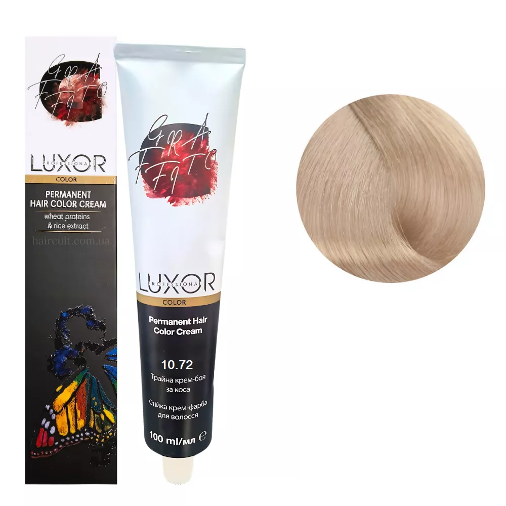 Особливості продукту: 10/72 Платиновий блондин шоколадний фіолетовий Стійка крем-фарба для волосся, 100мл Permanent Hair Color Cream LUXOR Professional Складається з TriplexSystem COLOR - інноваційної системи, що включає в себе три агента фарбування волосся для найкращого результату: Застосування: 10/72 Платиновий блондин шоколадний фіолетовий Стійка крем-фарба для волосся, 100мл Permanent Hair Color Cream LUXOR Professional У ємності змішайте фарбник, поживний флюїд і оксидант, нанесіть на волосся і залиште на необхідний час, змийте теплою водою. Перед використанням уважно ознайомтесь з інструкцією!Крем-фарба для волосся перманентна Permanent Hair Color Cream LUXOR Professional
