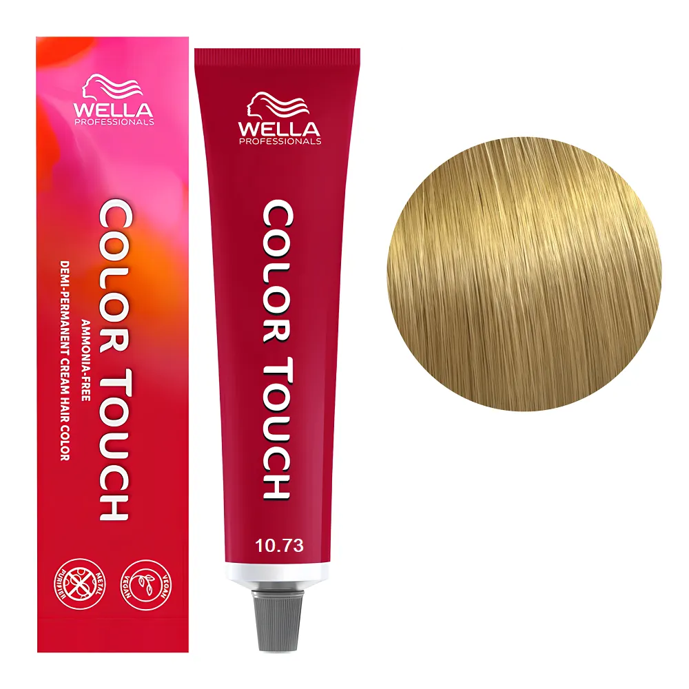 Фарба без аміаку Color Touch - це новий рівень фарбування: багатовимірне тонування волосся. Веганський склад із вмістом до 85% інгредієнтів натурального походження, без аміаку (за винятком Color Touch Plus, що призначена для сивого волосся), робить фарбування максимально делікатним. Особливості продукту: 10/73 дуже яскравий блондин коричнево-золотистий Фарба для тонування волосся без аміаку (Оновлена формула), 60 мл COLOR TOUCH Wella Professionals Усі відтінки базової гами Color Touch можна змішувати між собою. Застосування: 10/73 дуже яскравий блондин коричнево-золотистий Фарба для тонування волосся без аміаку (Оновлена формула), 60 мл COLOR TOUCH Wella Professionals Час витримки: з теплом 15 хвилин, без тепла 20-25 хвилин. Продукт призначений для професійного використання. Уважно ознайомтесь з інструкцією.Тонувальна фарба без аміаку Color Touch Wella Professionals з оновленою веганською формулою