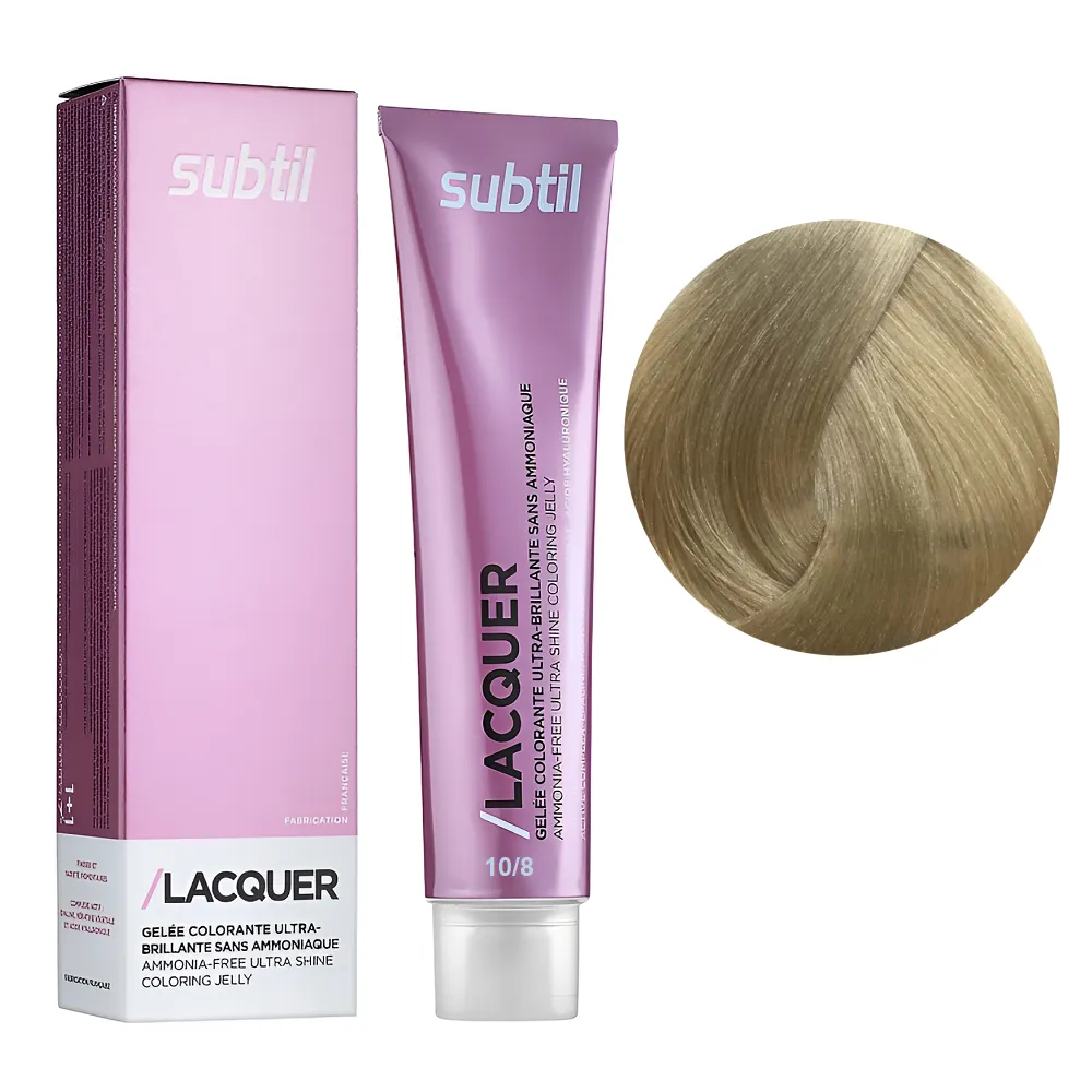 Subtil Lacquer - це фарба для волосся, створена без використання аміаку, на основі гілауроновой кислоти, рослинного кератину і EPOLINE - запатентованої формули (кукурудзяна олія + кисень). З цією фарбою тепер ви можете забути про процедуру відновлення кератину - фарбування і насичення волосся кератином відбувається одночасно і всього за 20 хвилин. Формула Lacquer містить також компоненти, що захищають шкіру, це робить фарбу доступною для застосування при дуже чутливій шкірі голови. Особливості продукту: 10/8 екстрасвітлий блондин бежевий Безаміачна тонувальна гелева фарба на кислотній основі, 60 мл LACQUER SUBTIL Застосування: 10/8 екстрасвітлий блондин бежевий Безаміачна тонувальна гелева фарба на кислотній основі, 60 мл LACQUER SUBTIL Час витримки: 10/8 екстрасвітлий блондин бежевий Безаміачна тонувальна гелева фарба на кислотній основі, 60 мл LACQUER SUBTIL Витримати на волоссі 20 хвилин після нанесення на коріння. Застосовувати фарбу слід, суворо дотримуючись інструкції, яка додається до кожної упаковки.Безаміачна тонувальна гелева фарба на кислотній основі LACQUER SUBTIL