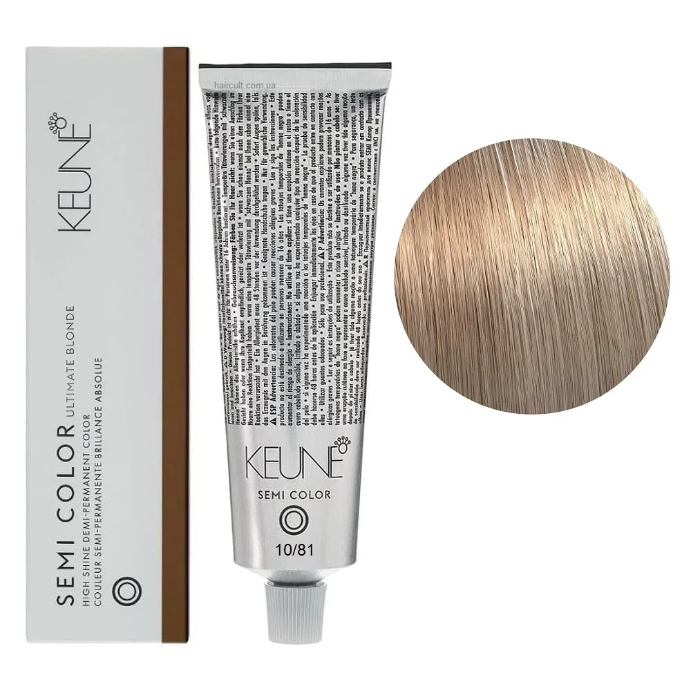 Keune Semi Color - це інноваційна безаміачна крем-фарба для волосся, створена на основі технології Silsoft, що забезпечує стійкий результат без шкоди для структури волосся. Засіб ідеально підходить для тонування, освіження кольору та фарбування до 70% сивини. Формула нового покоління містить активні компоненти, які м’яко відновлюють природний відтінок, роблять волосся гладким, м’яким і еластичним. Завдяки нейтральному pH та відсутності аміаку, фарба підходить навіть для чутливої шкіри голови та волосся після хімічних процедур. Особливості продукту: 10/81 Платиновий блондин мока-попелястий Фарба для тонування волосся без аміаку, 60 мл Demi-Permanent Color SЕМІ COLOR KEUNE Застосування: 10/81 Платиновий блондин мока-попелястий Фарба для тонування волосся без аміаку, 60 мл Demi-Permanent Color SЕМІ COLOR KEUNE Фарбу Keune Semi Color слід змішати з Activator Semi Color (2.25%) або Activator Intense Semi Color (3%) у співвідношенні 1:2. Час витримки 20 хвилин. Продукт для професійного використання. Уважно ознайомтесь з офіційною інструкцією.Фарба для тонування волосся без аміаку Demi-Permanent Color SЕМІ COLOR KEUNE