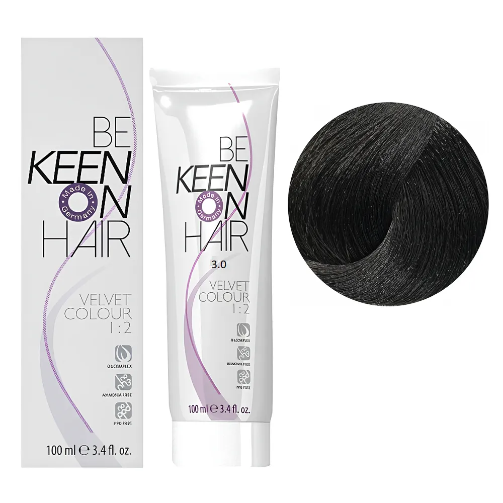 Перманентна крем-фарба VELVET COLOUR призначена для тонування та для делікатного фарбування. Забезпечує 90% зафарбовування сивини і має чудову стійкість. Стійкість до 40 разів миття. Особливості продукту: 3/0 темно-коричневий Перманентна крем-фарба без аміаку, 100 мл VELVET COLOUR KEEN Активні компоненти: 3/0 темно-коричневий Перманентна крем-фарба без аміаку, 100 мл VELVET COLOUR KEEN Застосування: 3/0 темно-коричневий Перманентна крем-фарба без аміаку, 100 мл VELVET COLOUR KEEN Час витримки: 20-30 хвилин. Продукт призначений для професійного використання. Уважно ознайомтесь з інструкцією.Перманентна крем-фарба без аміаку VELVET COLOUR KEEN