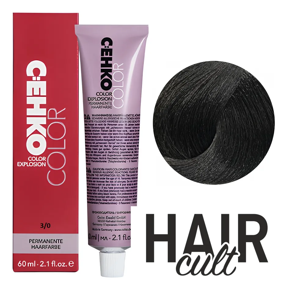 3/0 Темно-коричневий натуральний Стійка перманентна крем-фарба для волосся, 60 мл Permament Hair Color EXPLOSION C:EHKO