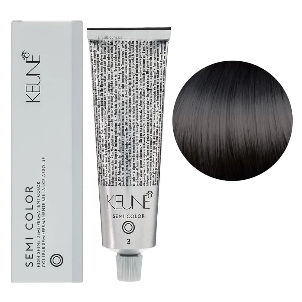 Keune Semi Color - це інноваційна безаміачна крем-фарба для волосся, створена на основі технології Silsoft, що забезпечує стійкий результат без шкоди для структури волосся. Засіб ідеально підходить для тонування, освіження кольору та фарбування до 70% сивини. Формула нового покоління містить активні компоненти, які м’яко відновлюють природний відтінок, роблять волосся гладким, м’яким і еластичним. Завдяки нейтральному pH та відсутності аміаку, фарба підходить навіть для чутливої шкіри голови та волосся після хімічних процедур. Особливості продукту: 3 Темно-коричневий натуральний Фарба для тонування волосся без аміаку, 60 мл Demi-Permanent Color SЕМІ COLOR KEUNE Застосування: 3 Темно-коричневий натуральний Фарба для тонування волосся без аміаку, 60 мл Demi-Permanent Color SЕМІ COLOR KEUNE Фарбу Keune Semi Color слід змішати з Activator Semi Color (2.25%) або Activator Intense Semi Color (3%) у співвідношенні 1:2. Час витримки 20 хвилин. Продукт для професійного використання. Уважно ознайомтесь з офіційною інструкцією.Фарба для тонування волосся без аміаку Demi-Permanent Color SЕМІ COLOR KEUNE