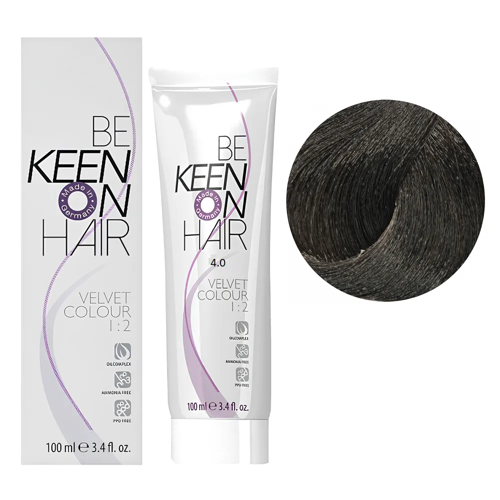 Перманентна крем-фарба VELVET COLOUR призначена для тонування та для делікатного фарбування. Забезпечує 90% зафарбовування сивини і має чудову стійкість. Стійкість до 40 разів миття. Особливості продукту: 4/0 темний шатен Перманентна крем-фарба без аміаку, 100 мл VELVET COLOUR KEEN Активні компоненти: 4/0 темний шатен Перманентна крем-фарба без аміаку, 100 мл VELVET COLOUR KEEN Застосування: 4/0 темний шатен Перманентна крем-фарба без аміаку, 100 мл VELVET COLOUR KEEN Час витримки: 20-30 хвилин. Продукт призначений для професійного використання. Уважно ознайомтесь з інструкцією.Перманентна крем-фарба без аміаку VELVET COLOUR KEEN