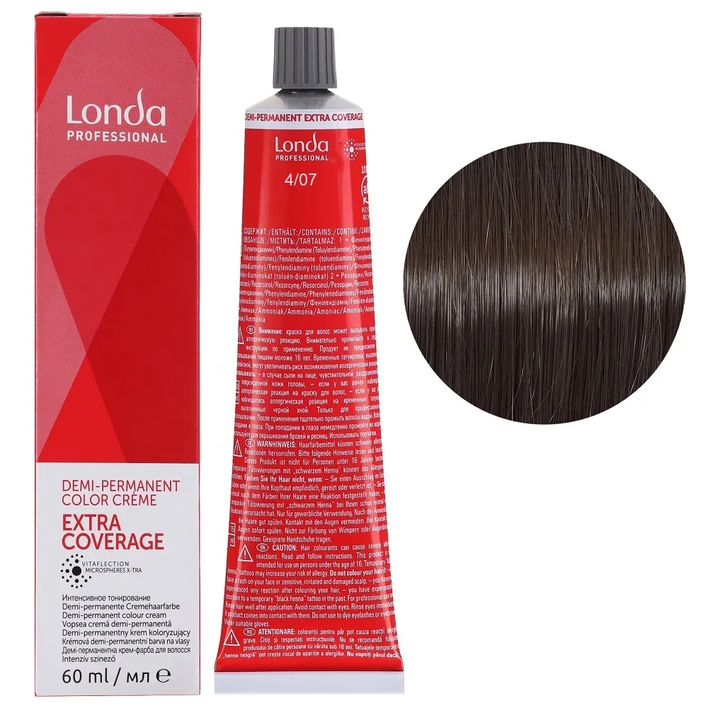 Фарба для інтенсивного тонування без аміаку зі світловідбивними мікросферами Vitaflection створена для живого, сяючого волосся з багатовимірним блиском. Додаткові натуральні відтінки для роботи з сивиною надають розкіш та сяючий блиск фарбованому волоссю. Отримайте красивий, здоровий результат фарбування. Особливості продукту: 4/07 середній брюнет натурально-коричневий Демі-перманентна фарба без аміаку для сивини, 60 мл Demi-Permanent Color EXTRA COVERAGE Londa Professional Застосування: 4/07 середній брюнет натурально-коричневий Демі-перманентна фарба без аміаку для сивини, 60 мл Demi-Permanent Color EXTRA COVERAGE Londa Professional Змішати Demi-Permanent Color EXTRA COVERAGE з емульсією для інтенсивного тонування Demi-Permanent Emulsion Londacolor 4%, в пропорції 1:2. Час витримки залежить від бажаного результату. Важливо! Продукт для професійного застосування. Уважно ознайомтесь з інструкцією.Демі-перманентна фарба без аміаку для сивини Demi-Permanent Color EXTRA COVERAGE Londa Professional