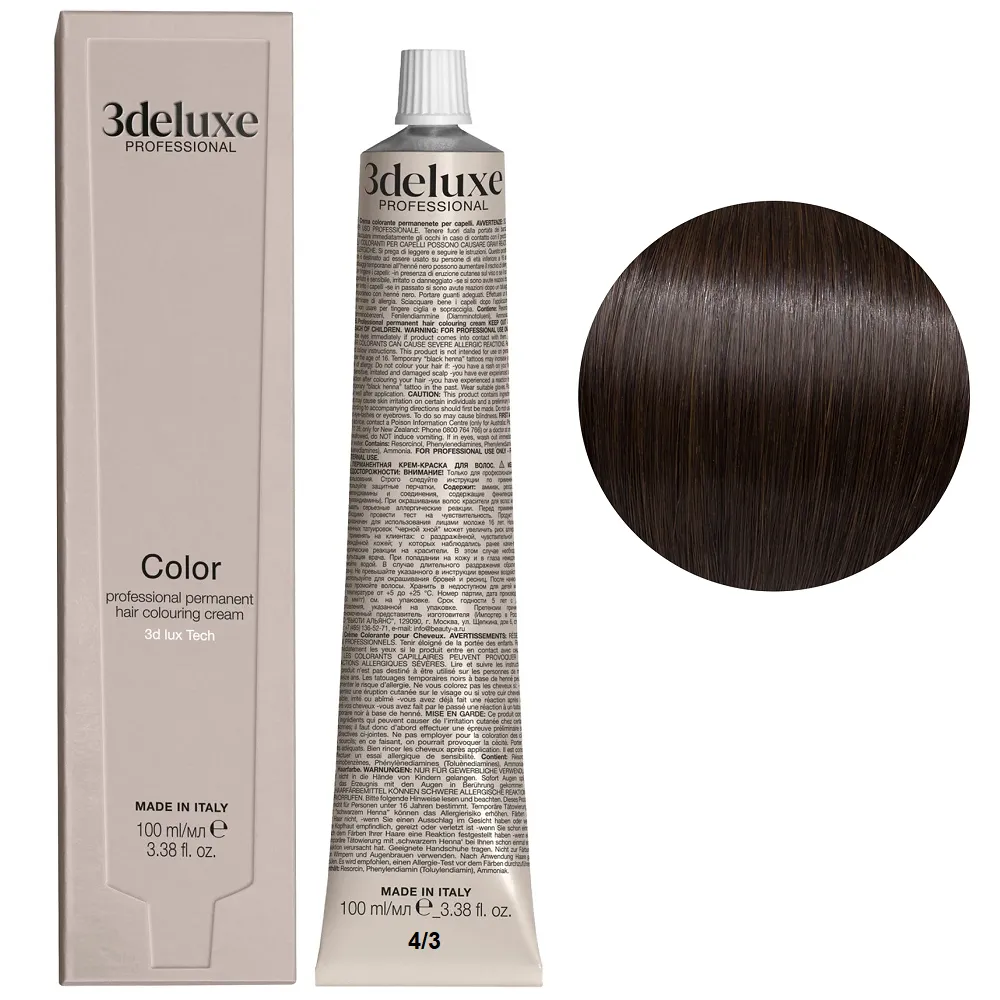 Професійна стійка кремова фарба для волосся Permanent Hair Color 3deluxe з неймовірним відбиттям світла та чудовим захистом, забезпечує волоссю неперевершену якість. Містить технологію 3D Lux, яка забезпечує насичений, яскравий, багатогранний колір: Особливості продукту: 4/3 коричневий золотистий Фарба для волосся, 100 мл Permanent Hair Color 3deluxe Professional Активні компоненти: 4/3 коричневий золотистий Фарба для волосся, 100 мл Permanent Hair Color 3deluxe Professional Застосування: 4/3 коричневий золотистий Фарба для волосся, 100 мл Permanent Hair Color 3deluxe Professional Змішайте в пластмасовому посуді крему-фарбу Color 3deluxe з кремом-окислювачем 1,5%, 3%, 6%, 9% або 12%. Пропорції змішування: для основної палітри відтінків - 1:1,5, для освітлювального ряду - 1:2, для більш насиченого кольору - 1:1. Час витримки залежить від бажаного результату. Важливо! Продукт для професійного застосування. Уважно ознайомтесь з інструкцією.Фарба для волосся Permanent Hair Color 3deluxe Professional