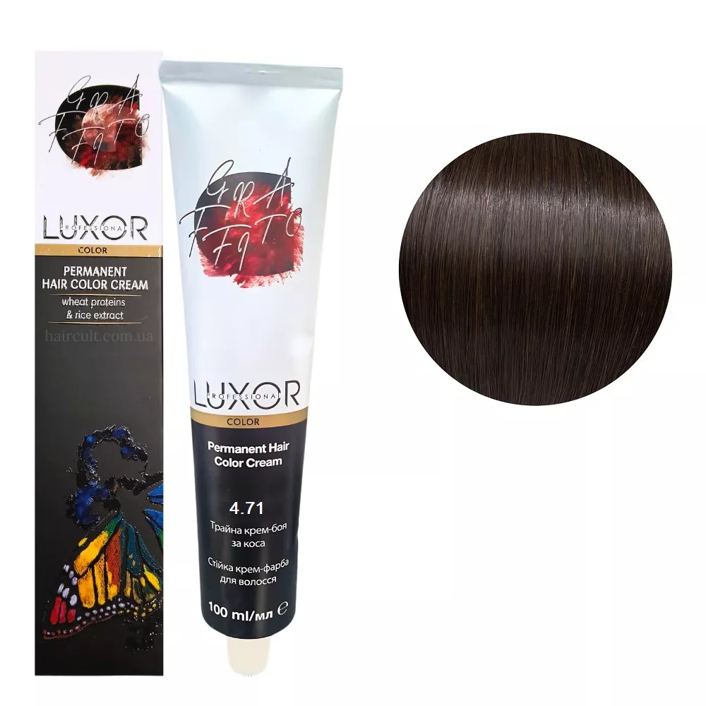 Особливості продукту: 4/71 Коричневий шоколадний попелястий Стійка крем-фарба для волосся, 100мл Permanent Hair Color Cream LUXOR Professional Складається з TriplexSystem COLOR - інноваційної системи, що включає в себе три агента фарбування волосся для найкращого результату: Застосування: 4/71 Коричневий шоколадний попелястий Стійка крем-фарба для волосся, 100мл Permanent Hair Color Cream LUXOR Professional У ємності змішайте фарбник, поживний флюїд і оксидант, нанесіть на волосся і залиште на необхідний час, змийте теплою водою. Перед використанням уважно ознайомтесь з інструкцією!Крем-фарба для волосся перманентна Permanent Hair Color Cream LUXOR Professional