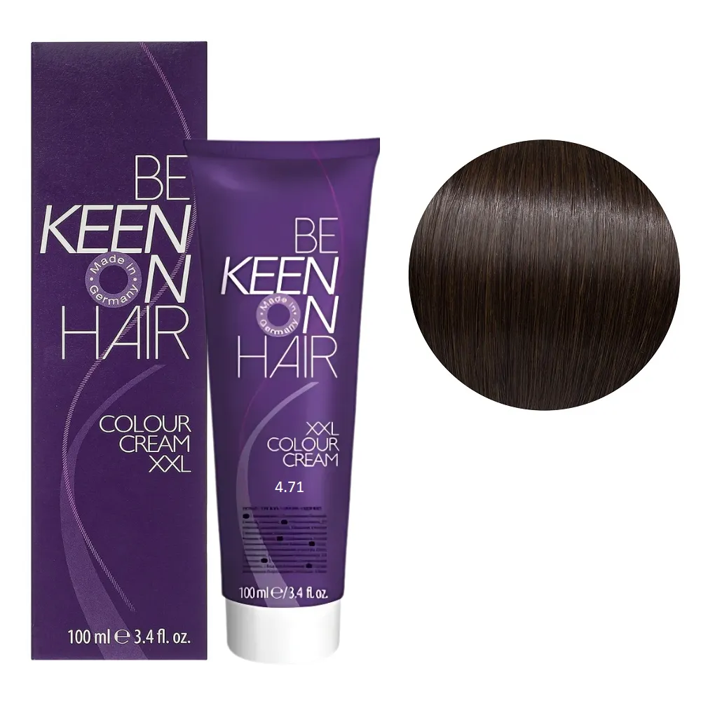 Краще співвідношення ціни та якості! Colour Cream XXL KEEN фарба німецького виробника завоювала визнання професійних майстрів і покупців по всій Європі. Палітра налічує понад 116 відтінків для креативної комбінації кольорів. Всі тони поєднуються між собою, їх можна змішувати, створюючи свій неповторний стиль. Кремоподібна текстура фарби легко наноситься, не тече і забезпечує рівномірний результат. Особливості продукту: 4/71 коричневий каштаново-попелястий Стійка крем-фарба для волосся, 100 мл Colour Cream XXL KEEN Активні компоненти: гідролізовані молочні протеїни піклуються про волосся під час фарбування зберігають необхідну вологість, надає волоссю блиску та пружності. Застосування: 4/71 коричневий каштаново-попелястий Стійка крем-фарба для волосся, 100 мл Colour Cream XXL KEEN Змішати в неметалевому посуді крем-фарбу Colour Cream XXL KEEN із крем-окислювачем. Фарбуючу суміш наносити на сухе чисте волосся. Вибір концентрації крем-окислювача 1,9%, 3%, 6%, 9% або 12% залежить від бажаного рівня освітлення. При використанні додаткового джерела тепла час витримки зменшується вдвічі. Пропорції змішування: 4/71 коричневий каштаново-попелястий Стійка крем-фарба для волосся, 100 мл Colour Cream XXL KEEN Час витримки: 35 хвилин. Продукт призначений для професійного використання. Уважно ознайомтесь з інструкцією.Стійка крем-фарба для волосся Colour Cream XXL KEEN