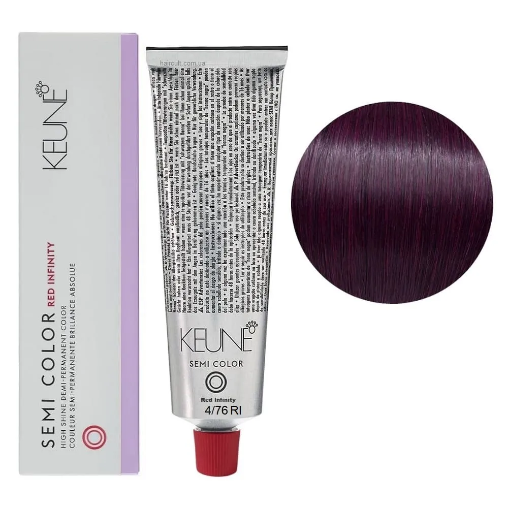 Keune Semi Color - це інноваційна безаміачна крем-фарба для волосся, створена на основі технології Silsoft, що забезпечує стійкий результат без шкоди для структури волосся. Засіб ідеально підходить для тонування, освіження кольору та фарбування до 70% сивини. Формула нового покоління містить активні компоненти, які м’яко відновлюють природний відтінок, роблять волосся гладким, м’яким і еластичним. Завдяки нейтральному pH та відсутності аміаку, фарба підходить навіть для чутливої шкіри голови та волосся після хімічних процедур. Особливості продукту: 4/76 RI Середньо-коричневий фіолетово-мідний Фарба для тонування волосся без аміаку, 60 мл Demi-Permanent Color SЕМІ COLOR KEUNE Застосування: 4/76 RI Середньо-коричневий фіолетово-мідний Фарба для тонування волосся без аміаку, 60 мл Demi-Permanent Color SЕМІ COLOR KEUNE Фарбу Keune Semi Color слід змішати з Activator Semi Color (2.25%) або Activator Intense Semi Color (3%) у співвідношенні 1:2. Час витримки 20 хвилин. Продукт для професійного використання. Уважно ознайомтесь з офіційною інструкцією.Фарба для тонування волосся без аміаку Demi-Permanent Color SЕМІ COLOR KEUNE