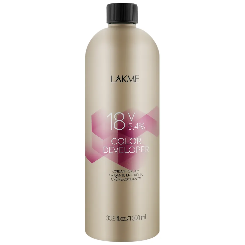 COLOR DEVELOPER LAKME – спеціально адаптований крем-окислювач для роботи з будь-яким барвником Lakme. Забезпечує легке змішування з фарбою для волосся та легке нанесення, що призводить до кращого вбирання кольору у волосся. Додавання абіссинської олії забезпечує додаткове зволоження та догляд у процесі фарбування, завдяки чому ви менше ушкоджуєте волосся та насолоджуєтеся красивим блиском. В асортименті: 1,8%, 2,7%, 5,4%, 8,4%, 11,5%. Застосування: Крем-окисник 18V (5.4%), 1000 мл 40201 Oxidant cream COLOR DEVELOPER LAKME Змішати з кремом-фарбою в пропорціях в залежності від фарби, далі слідувати рекомендаціям у способах застосування вибраної фарби.Крем-окисник Oxidant cream COLOR DEVELOPER LAKME