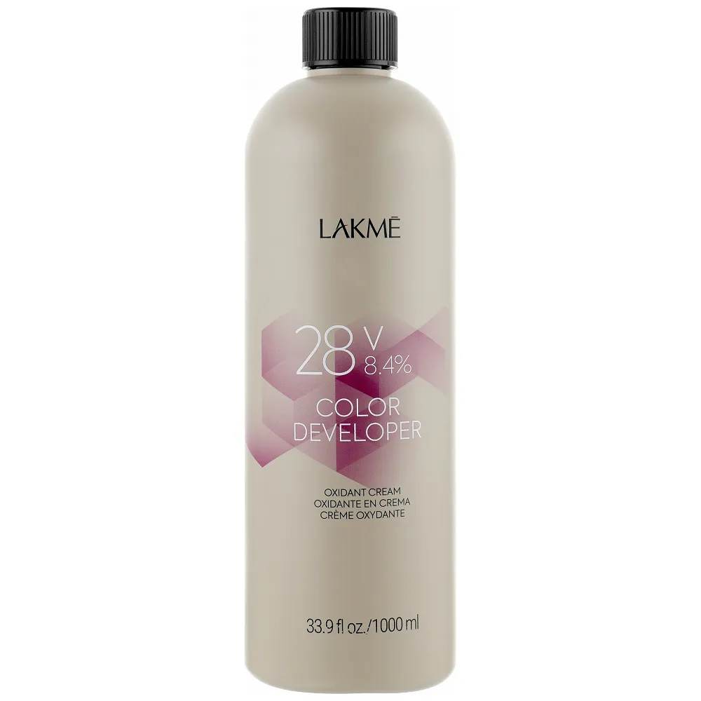 COLOR DEVELOPER LAKME – спеціально адаптований крем-окислювач для роботи з будь-яким барвником Lakme. Забезпечує легке змішування з фарбою для волосся та легке нанесення, що призводить до кращого вбирання кольору у волосся. Додавання абіссинської олії забезпечує додаткове зволоження та догляд у процесі фарбування, завдяки чому ви менше ушкоджуєте волосся та насолоджуєтеся красивим блиском. В асортименті: 1,8%, 2,7%, 5,4%, 8,4%, 11,5%. Застосування: Крем-окисник 28V (8.4%), 1000 мл 40301 Oxidant cream COLOR DEVELOPER LAKME Змішати з кремом-фарбою в пропорціях в залежності від фарби, далі слідувати рекомендаціям у способах застосування вибраної фарби.Крем-окисник Oxidant cream COLOR DEVELOPER LAKME