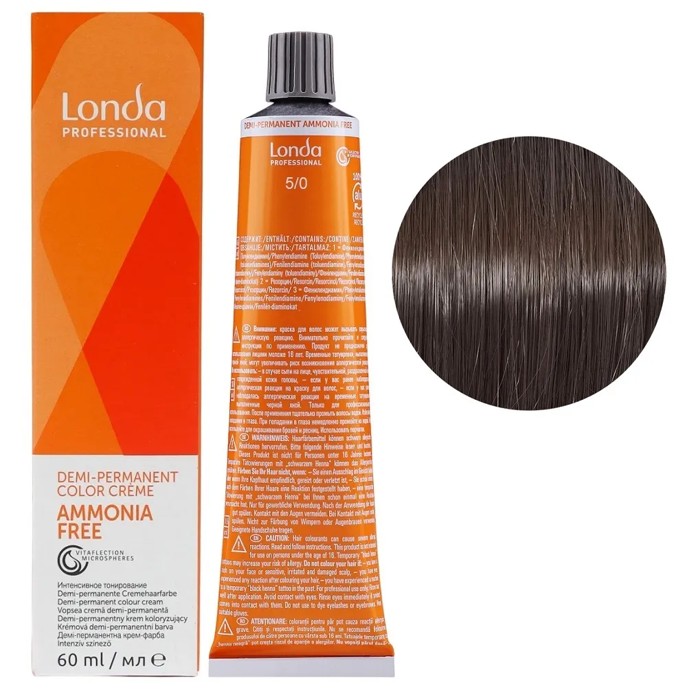 Фарба для інтенсивного тонування без аміаку зі світловідбивними мікросферами Vitaflection створює живе, сяюче волосся з багатовимірним блиском. Demi-Permanent використовує середовище для підлужнення без аміаку та пероксиди низької концентрації, тому прекурсори барвників проникають у волокна волосся менш глибоко. Завдяки цьому структура волосся змінюється менше, ніж при використанні стійких крем-фарб Permanent Color. Особливості продукту: 5/0 світлий брюнет Демі-перманентна фарба без аміаку, 60 мл Demi-Permanent Color Londa Professional Застосування: 5/0 світлий брюнет Демі-перманентна фарба без аміаку, 60 мл Demi-Permanent Color Londa Professional Змішати Demi-Permanent Color з емульсією для інтенсивного тонування Demi-Permanent Emulsion Londacolor 1,9% або 4%, в пропорції 1:2. Час витримки залежить від бажаного результату. Важливо! Продукт для професійного застосування. Уважно ознайомтесь з інструкцією.Демі-перманентна фарба без аміаку Demi-Permanent Color Londa Professional