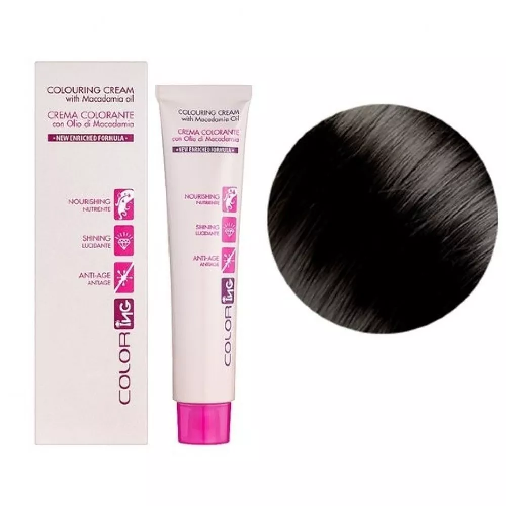 1 чорний натуральний Крем-фарба для волосся перманентна, 60 мл Colouring Cream with Macadamia oil ING Professional