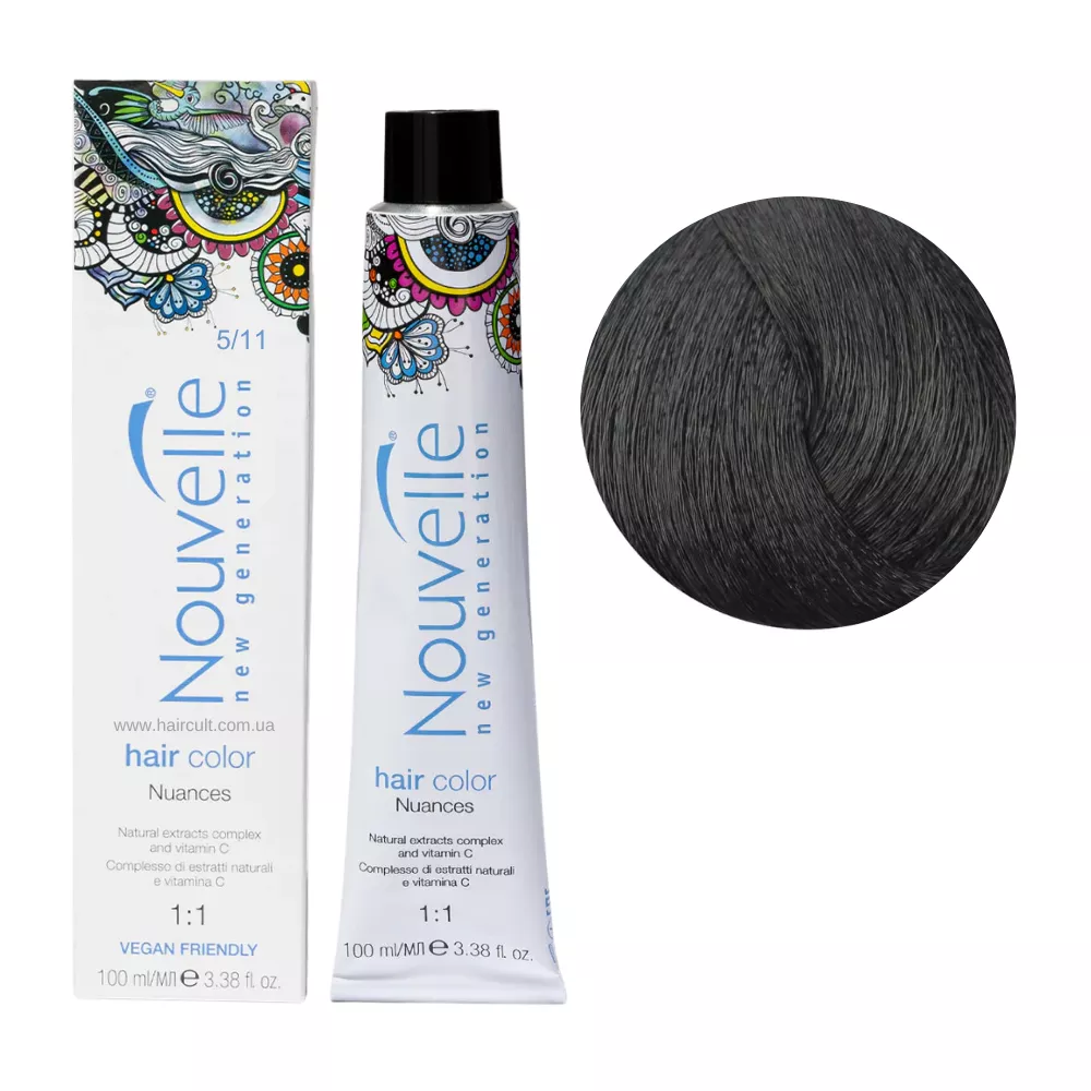5/11 насичений попелястий світло каштановий Фарба для волосся перманентна, 100мл Permanent Hair Color Nouvelle