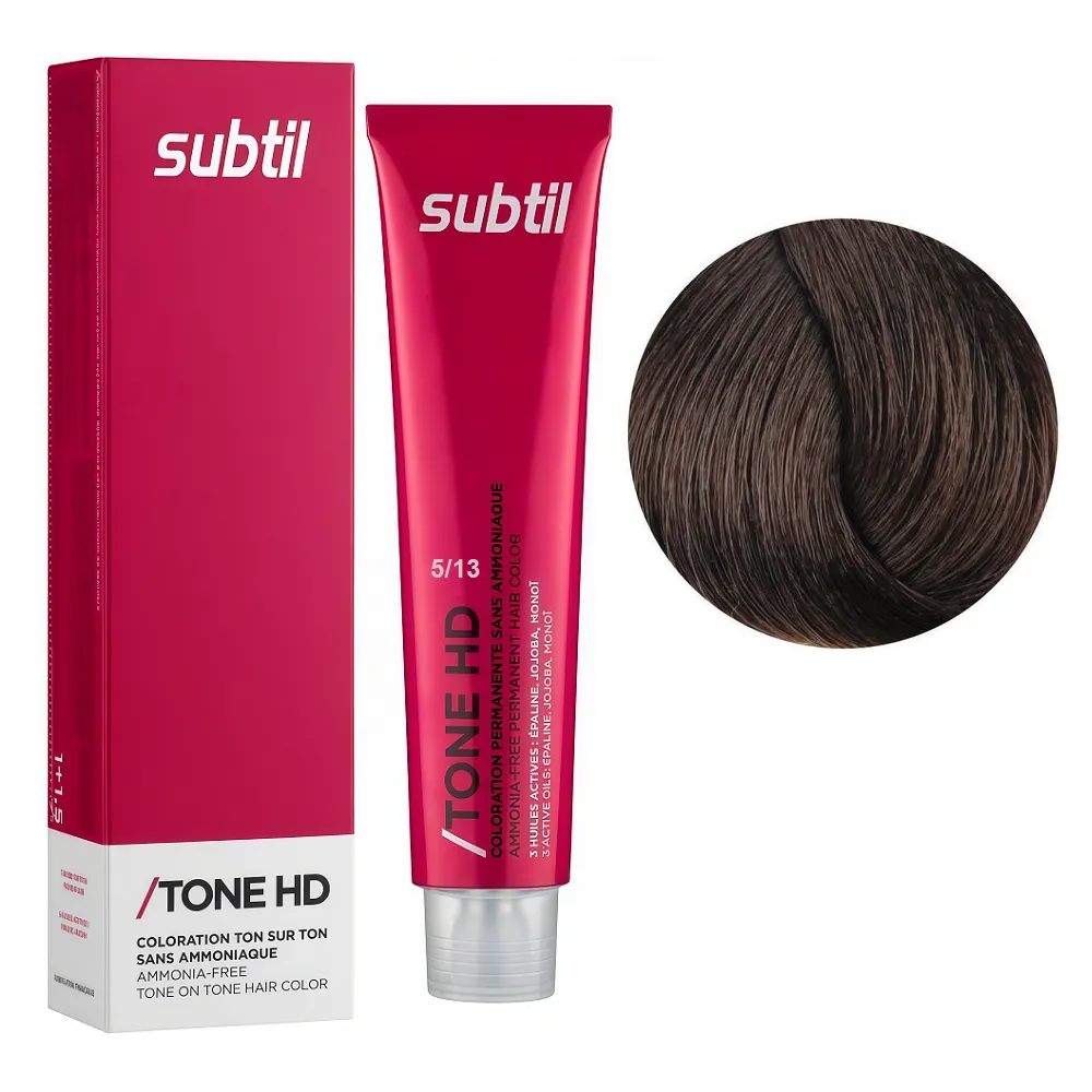 Тонувальна крем-фарба TONE HD має легку консистенцію, що відрізняється м`яким, делікатним впливом на волосся і шкіру голови. Tone HD дозволяє зробити рефреш кольору та підсилення власного тону волосся. Фарба підходить для підтримки необхідного кольору відразу після фарбування, після проведення хімічної завивки, для створення тимчасового відтінку або для фарбування тон-в-тон. В результаті фарбування волосся набуває досконалого вигляду, інтенсивниого яскравого кольору та ідеального блиску. Особливості продукту: 5/13 глиниста земля Безаміачна крем-фарба для тонування волосся на лужній основі, 60 мл TONE HD SUBTIL Застосування: 5/13 глиниста земля Безаміачна крем-фарба для тонування волосся на лужній основі, 60 мл TONE HD SUBTIL/span> Розвести в неметалевій ємності: 1 частина Subtil Tone HD + 1,5 частини Subtil OXI 2.7%. Наносимо на сухе, немите волосся. Змиваються безаммиачні фарби поступово, легко, рівномірно, через 4-6 тижнів при митті 2 рази в тиждень, завдяки цьому волосся, що відростає не відрізняється від вже забарвленого. Застосовувати фарбу слід, суворо дотримуючись інструкції, яка додається до кожної упаковки.Безаміачна крем-фарба для тонування волосся на лужній основі TONE HD SUBTIL