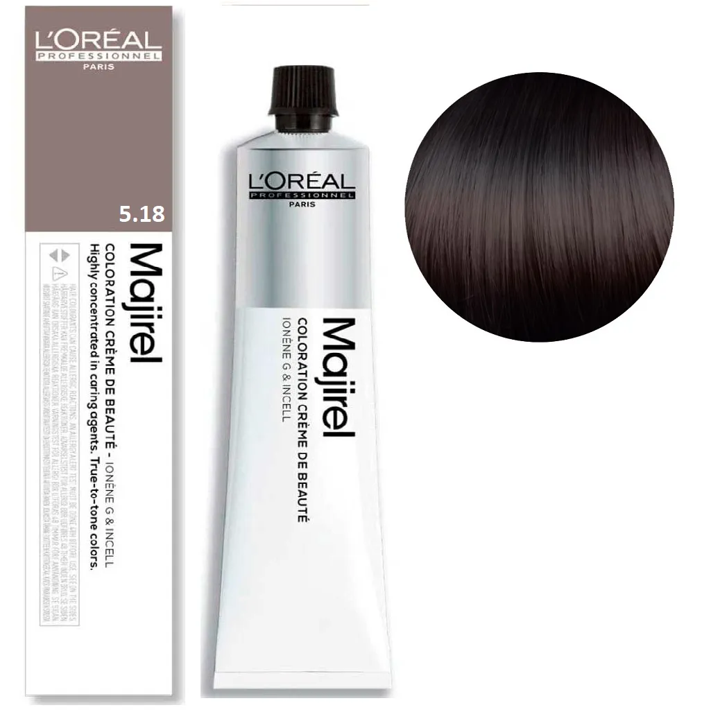 Majirel від L’Oreal Professionnel - це професійна стійка крем-фарба, створена для майстрів, які цінують точність, передбачуваність і розкішний результат фарбування. Формула розроблена з урахуванням останніх досягнень у сфері колористики, щоб забезпечити насичений колір, ідеальне покриття сивини та неперевершений блиск. Завдяки технології Ionene G™ та Incell™ волосся зберігає здорову структуру навіть після інтенсивного фарбування. Активні компоненти проникають у глибину волокна, зміцнюють кутикулу та підвищують стійкість кольору. Результат - шовковисті пасма з глибоким, багатовимірним відтінком. Особливості продукту: 5/18 Світло-коричневий попелястий мокко Фарба для волосся стійка, 60 мл Majirel L`Oreal Professionnel (оновлений формат) Застосування: 5/18 Світло-коричневий попелястий мокко Фарба для волосся стійка, 60 мл Majirel L`Oreal Professionnel (оновлений формат) Пропорції змішування з окислювачем: Час витримки залежить від обраної фарби та бажаного результату фарбування. Фарба Majirel від L’Oreal Professionnel призначена для професійного використання! Уважно ознайомтесь з інструкцією.Фарба для волосся стійка Majirel L`Oreal Professionnel (оновлений формат - 60 мл)