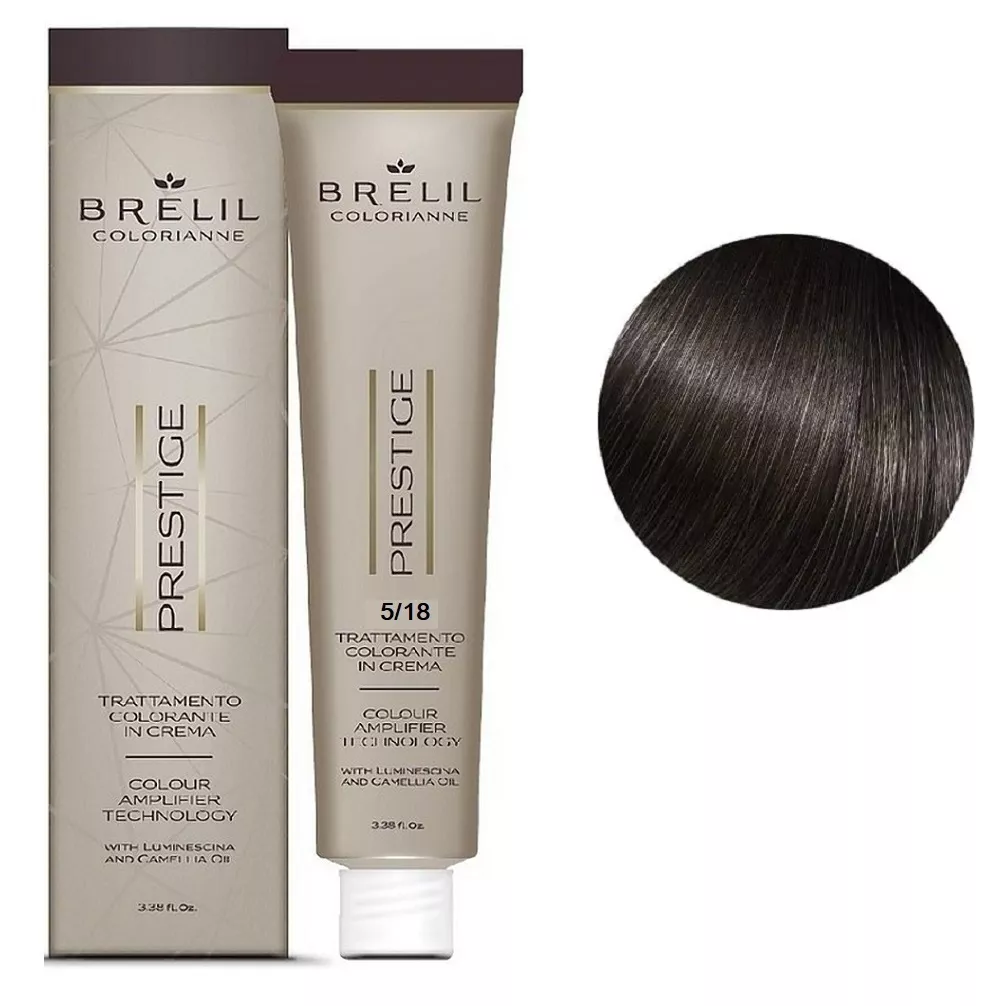 5/18 Крем-фарба для волосся перманентна з низьким вмістом аміаку, 100мл Colorianne Prestige BRELIL Professional