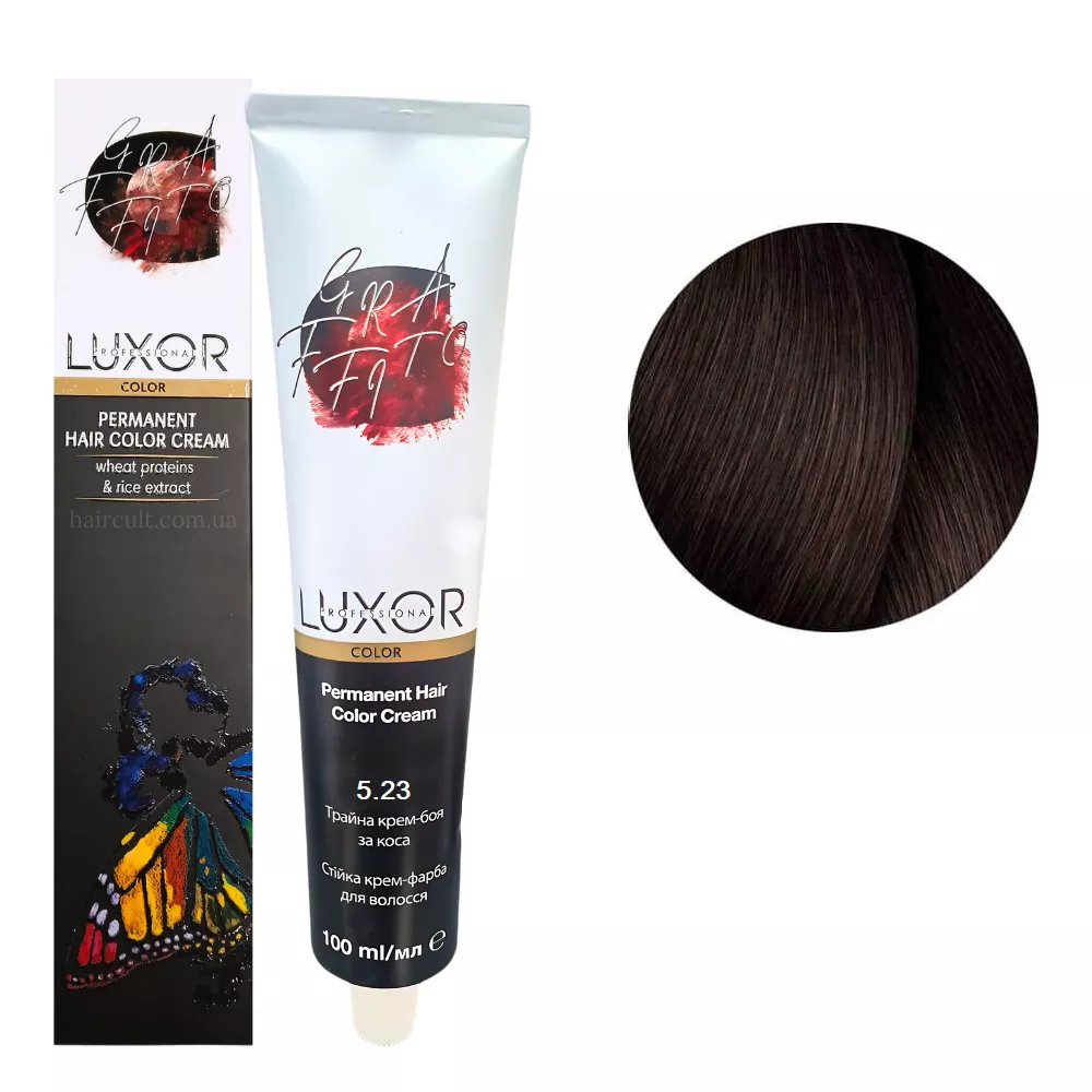 Особливості продукту: 5/23 Світлий коричневий фіолетовий золотистий Стійка крем-фарба для волосся, 100мл Permanent Hair Color Cream LUXOR Professional Складається з TriplexSystem COLOR - інноваційної системи, що включає в себе три агента фарбування волосся для найкращого результату: Застосування: 5/23 Світлий коричневий фіолетовий золотистий Стійка крем-фарба для волосся, 100мл Permanent Hair Color Cream LUXOR Professional У ємності змішайте фарбник, поживний флюїд і оксидант, нанесіть на волосся і залиште на необхідний час, змийте теплою водою. Перед використанням уважно ознайомтесь з інструкцією!Крем-фарба для волосся перманентна Permanent Hair Color Cream LUXOR Professional