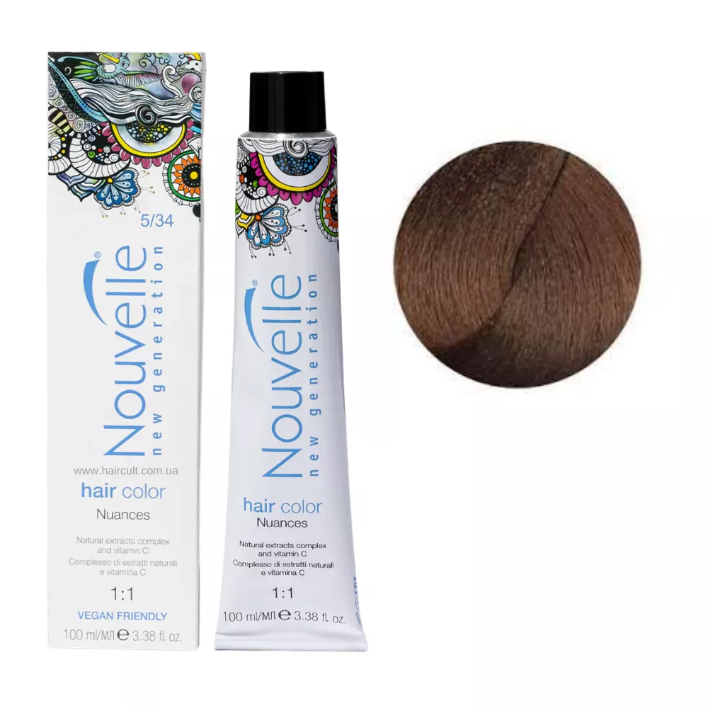5/34 світло-золотистий мідно-коричневий Фарба для волосся перманентна, 100мл Permanent Hair Color Nouvelle