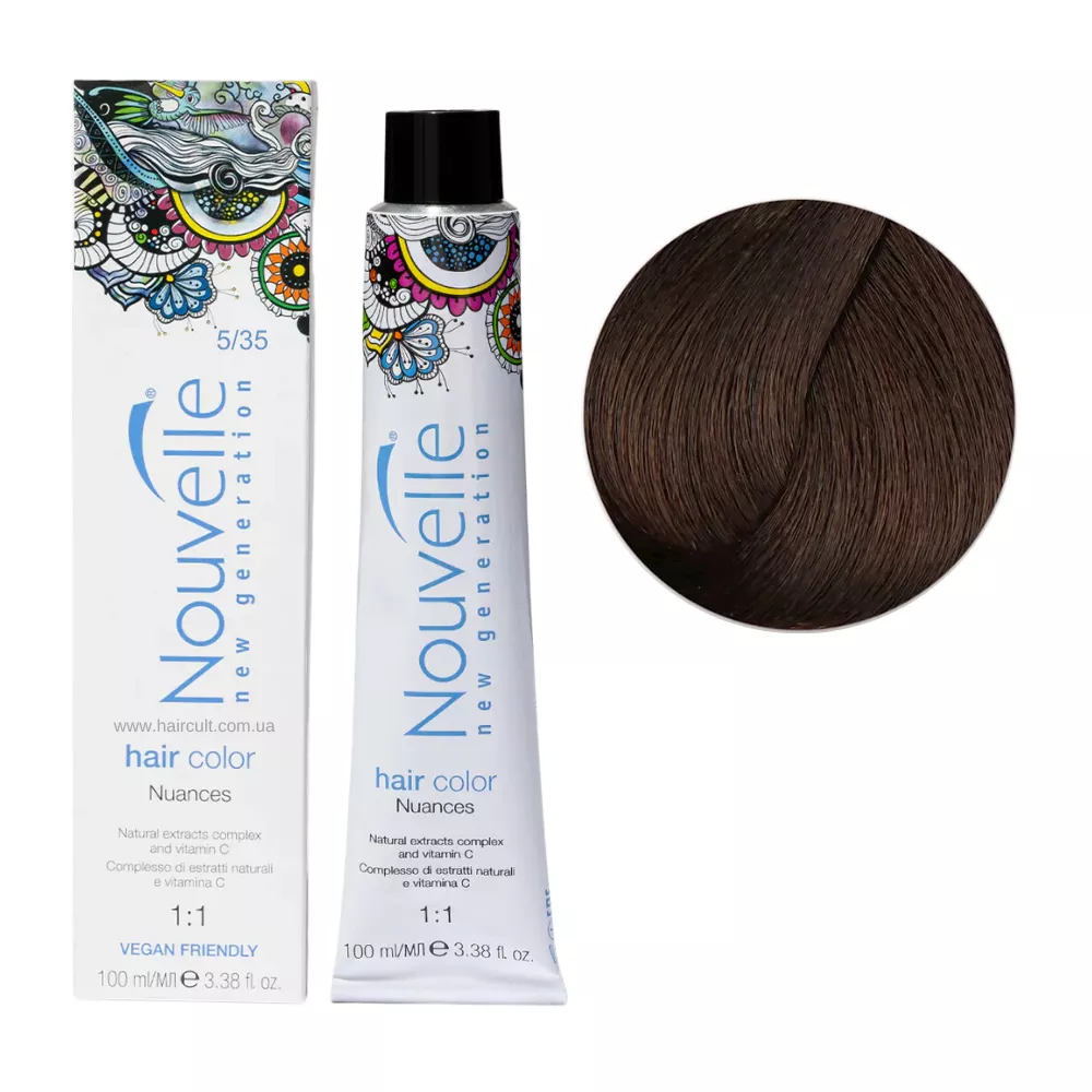 5/35 світло-золотистий коричневий червоного дереваФарба для волосся перманентна, 100мл Permanent Hair Color Nouvelle
