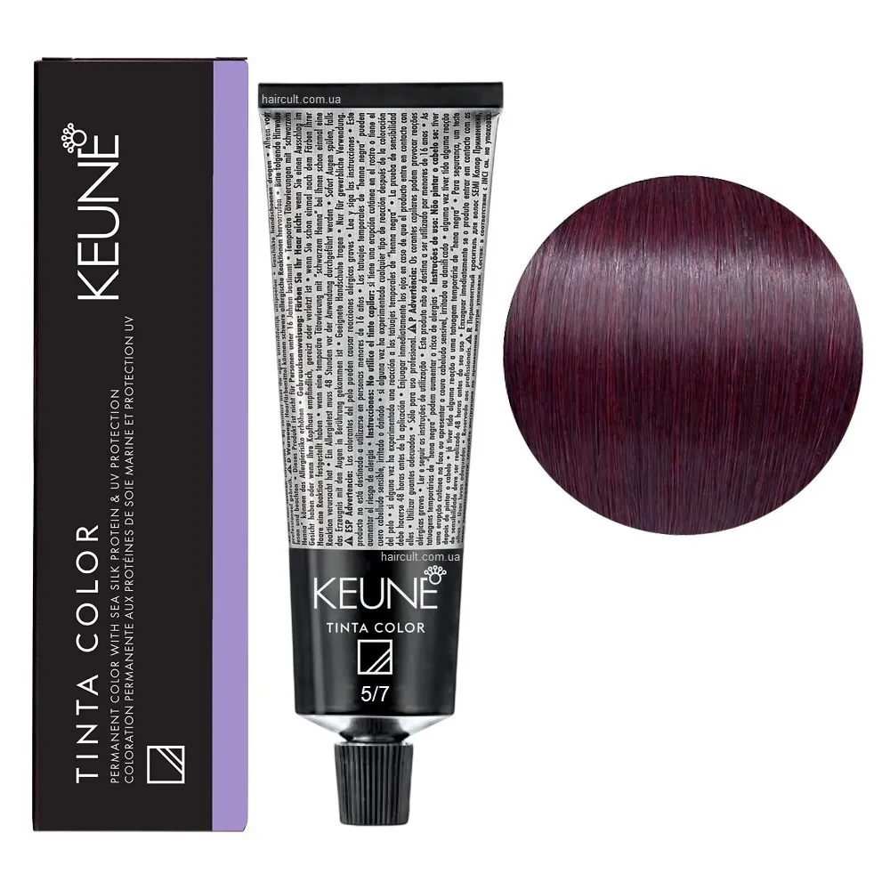 Застосування: 5/7 Світло-коричневий фіолетовий Фарба перманентна для волосся, 60 мл Permanent Color TINTA COLOR KEUNE