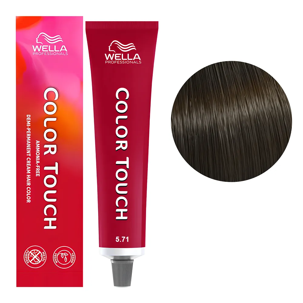 Фарба без аміаку Color Touch - це новий рівень фарбування: багатовимірне тонування волосся. Веганський склад із вмістом до 85% інгредієнтів натурального походження, без аміаку (за винятком Color Touch Plus, що призначена для сивого волосся), робить фарбування максимально делікатним. Особливості продукту: 5/71 світлий шатен коричнево-попелястий Фарба для тонування волосся без аміаку (Оновлена формула), 60 мл COLOR TOUCH Wella Professionals Усі відтінки базової гами Color Touch можна змішувати між собою. Застосування: 5/71 світлий шатен коричнево-попелястий Фарба для тонування волосся без аміаку (Оновлена формула), 60 мл COLOR TOUCH Wella Professionals Час витримки: з теплом 15 хвилин, без тепла 20-25 хвилин. Продукт призначений для професійного використання. Уважно ознайомтесь з інструкцією.Тонувальна фарба без аміаку Color Touch Wella Professionals з оновленою веганською формулою