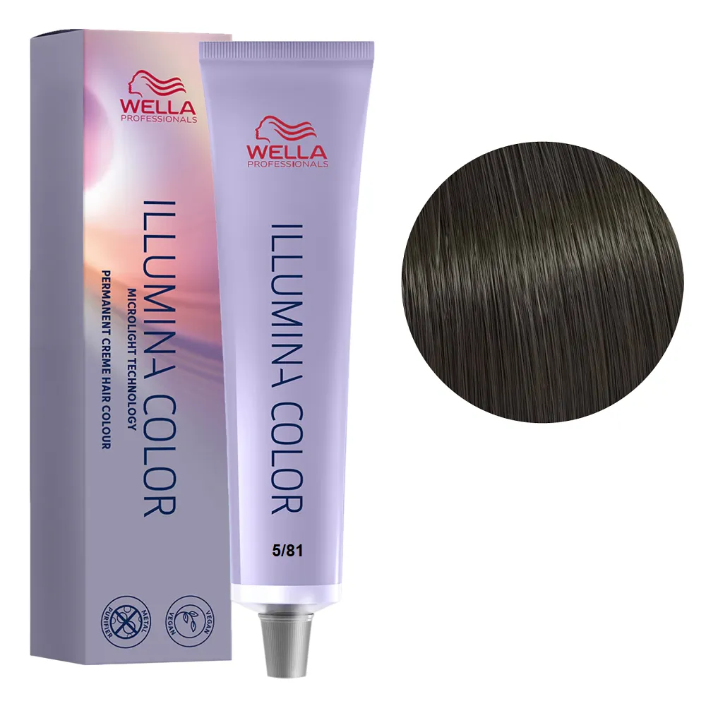 Формула фарби ILLUMINA COLOR заснована на запатентованій технології MICROLIGHT, яка захищає кутикулу волосся та не перевантажує його. Дана технологія обволікає мідні частки на поверхні кутикули, що перешкоджає їх взаємодії з фарбувальної сумішшю і підвищує тим самим захист лускатого шару. Це дозволяє променям світла вільно проникати всередину волосся та надає природним переливам кольору неймовірного сяйва, яке помітно при будь-якому освітленні. Всі тони поєднуються між собою, їх можна змішувати та створювати свій неповторний стиль. Фарба чудово підходить для першого досвіду для клієнтів, які бояться фарбування волосся. Особливості продукту: 5/81 світлий коричневий сріблясто-попелястий Стійка крем-фарба для волосся, 60 мл ILLUMINA COLOR Wella Professionals Застосування: 5/81 світлий коричневий сріблясто-попелястий Стійка крем-фарба для волосся, 60 мл ILLUMINA COLOR Wella Professionals Змішати в неметалевому посуді крем-фарбу ILLUMINA COLOR Wella Professionals із оксидантом WELLOXON PERFECT Wella Professionals у пропорції 1:1 (60 мл фарби + 60 мл оксиданту). Фарбуючу суміш наносити на сухе волосся. Час витримки: до 40 хвилин (до 25 хвилин з підігрівом) Продукт призначений для професійного використання. Уважно ознайомтесь з інструкцією.Стійка крем-фарба для волосся, 60 мл ILLUMINA COLOR Wella Professionals