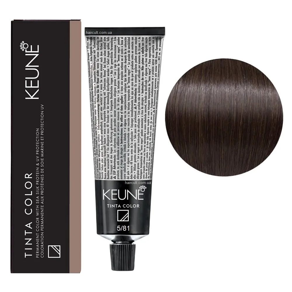 Tinta Color Keune - це преміальна перманентна крем-фарба, яка забезпечує 100% покриття сивини, інтенсивний колір та ефект догляду після кожного фарбування. Унікальна формула з протеїнами шовку глибоко кондиціонує волосся, зберігає його м’якість і блиск. Завдяки вмісту бджолиного воску, фарба не тече та рівномірно розподіляється по всій довжині. Фарба доступна в широкій палітрі - від природних тонів до виразних і насичених кольорів. Підходить для будь-якого типу волосся - як натурального, так і фарбованого. Спеціальні серії Tinta Color: Переваги фарби Keune Tinta Color: 5/81 Світло-коричневий мока-попелястий Фарба перманентна для волосся, 60 мл Permanent Color TINTA COLOR KEUNE Застосування: 5/81 Світло-коричневий мока-попелястий Фарба перманентна для волосся, 60 мл Permanent Color TINTA COLOR KEUNE Змішайте з окислювачем Cream Developer TINTA KEUNE у пропорції 1:1. Важливо! Продукт для професійного використання. Уважно ознайомтесь з офіційною інструкцією.Фарба перманентна для волосся Permanent Color Sea Silk Protein TINTA COLOR KEUNE