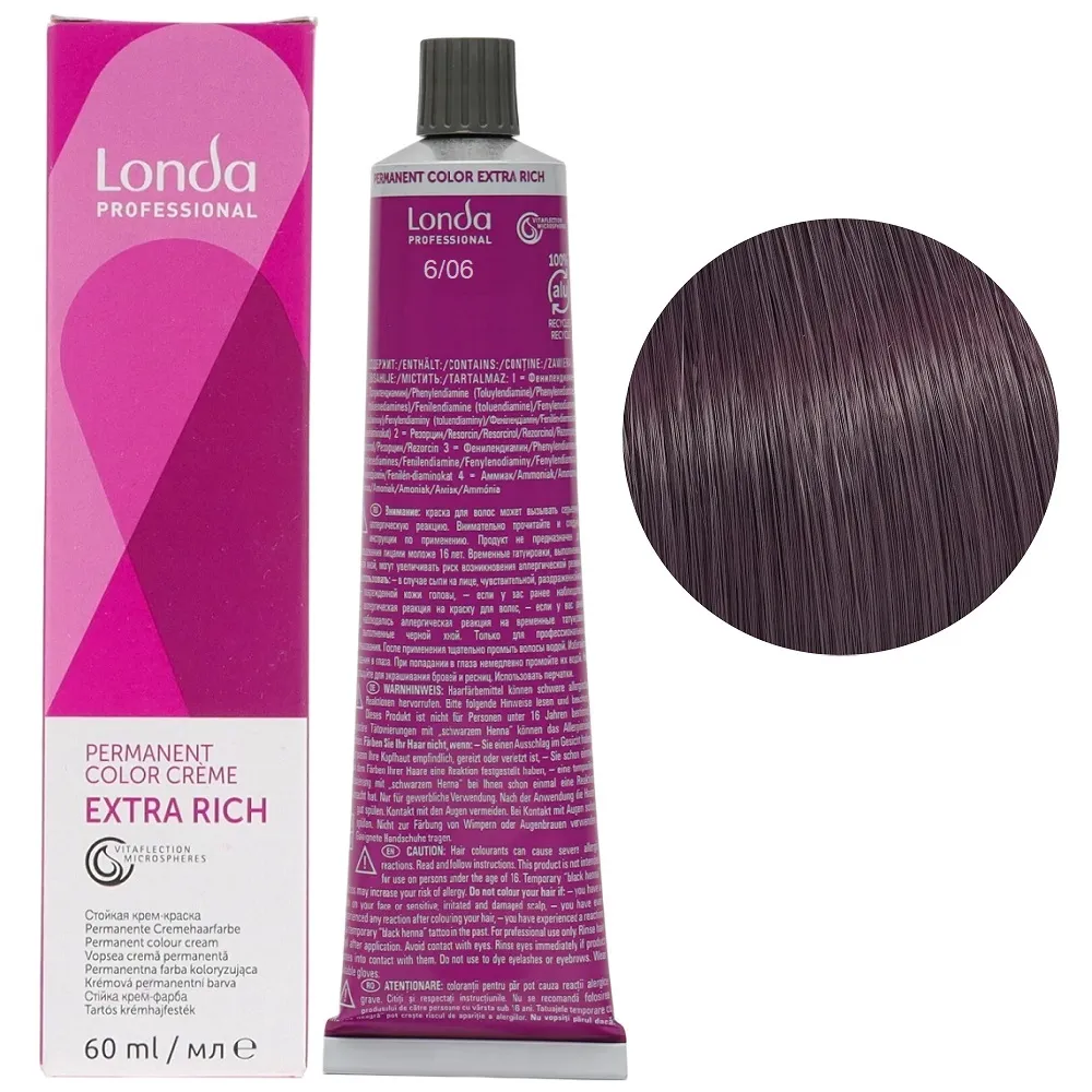 Стійка крем-фарба з мікросферами Vitaflection, які відбивають світло, для стійкого, насиченого життєвою енергією кольору і виняткового блиску волосся. Забезпечує тривалий результат – завдяки спеціальній технології фарба глибоко проникає у структуру волосся, забезпечує інтенсивний колір до 8 тижнів. Має широку палітру понад 100 відтінків для будь-якого типу та кольору волосся. Особливості продукту: 6/06 темний блондин натурально-фіолетовий Стійка фарба для волосся, 60 мл Permanent Color Londa Professional Фарба має престижну систему ароматів з високоякісним маскуванням аміаку, що робить фарбування більш приємним досвідом для вашого клієнта. Застосування: 6/06 темний блондин натурально-фіолетовий Стійка фарба для волосся, 60 мл Permanent Color Londa Professional Змішати фарбу Permanent Color з окислювачем Permanent Hair Colour Developer Londacolor 3%, 6%, 9% або 12%. Пропорції змішування: Час витримки залежить від бажаного результату. Важливо! Продукт для професійного застосування. Уважно ознайомтесь з інструкцією.Стійка фарба для волосся Permanent Color Londa Professional