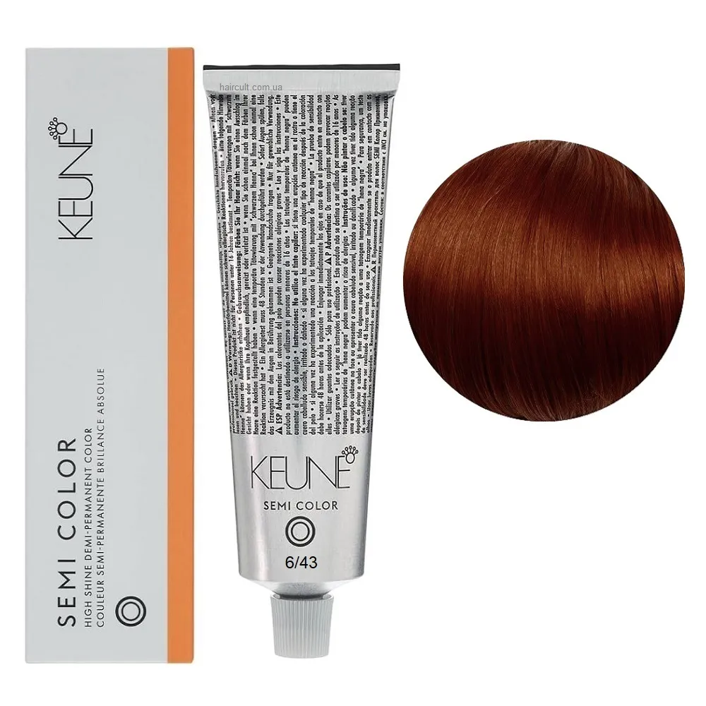 Keune Semi Color - це інноваційна безаміачна крем-фарба для волосся, створена на основі технології Silsoft, що забезпечує стійкий результат без шкоди для структури волосся. Засіб ідеально підходить для тонування, освіження кольору та фарбування до 70% сивини. Формула нового покоління містить активні компоненти, які м’яко відновлюють природний відтінок, роблять волосся гладким, м’яким і еластичним. Завдяки нейтральному pH та відсутності аміаку, фарба підходить навіть для чутливої шкіри голови та волосся після хімічних процедур. Особливості продукту: 6/43 Темний блондин мідно-золотистий Фарба для тонування волосся без аміаку, 60 мл Demi-Permanent Color SЕМІ COLOR KEUNE Застосування: 6/43 Темний блондин мідно-золотистий Фарба для тонування волосся без аміаку, 60 мл Demi-Permanent Color SЕМІ COLOR KEUNE Фарбу Keune Semi Color слід змішати з Activator Semi Color (2.25%) або Activator Intense Semi Color (3%) у співвідношенні 1:2. Час витримки 20 хвилин. Продукт для професійного використання. Уважно ознайомтесь з офіційною інструкцією.Фарба для тонування волосся без аміаку Demi-Permanent Color SЕМІ COLOR KEUNE