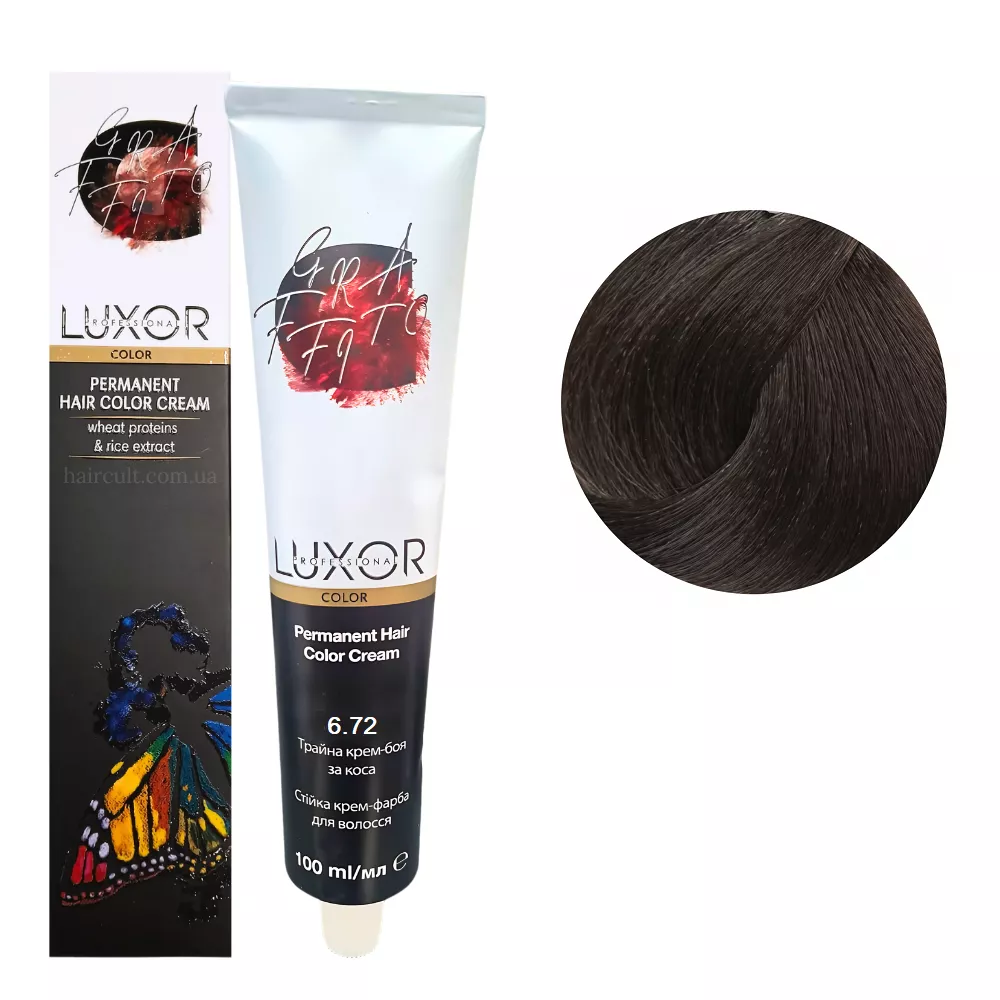 Особливості продукту: 6/72 Темний блондин шоколадний фіолетовий Стійка крем-фарба для волосся, 100мл Permanent Hair Color Cream LUXOR Professional Складається з TriplexSystem COLOR - інноваційної системи, що включає в себе три агента фарбування волосся для найкращого результату: Застосування: 6/72 Темний блондин шоколадний фіолетовий Стійка крем-фарба для волосся, 100мл Permanent Hair Color Cream LUXOR Professional У ємності змішайте фарбник, поживний флюїд і оксидант, нанесіть на волосся і залиште на необхідний час, змийте теплою водою. Перед використанням уважно ознайомтесь з інструкцією!Крем-фарба для волосся перманентна Permanent Hair Color Cream LUXOR Professional