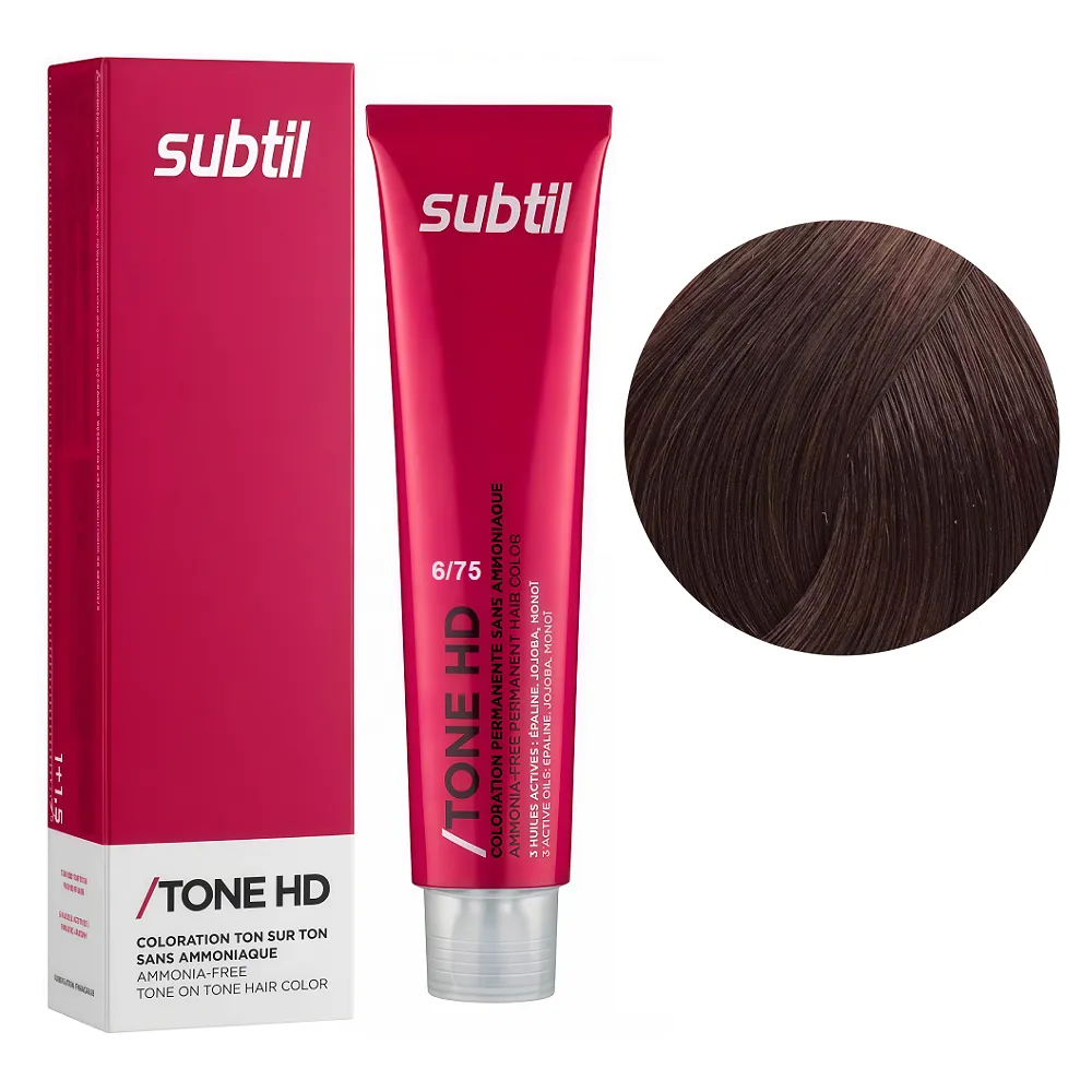 Тонувальна крем-фарба TONE HD має легку консистенцію, що відрізняється м`яким, делікатним впливом на волосся і шкіру голови. Tone HD дозволяє зробити рефреш кольору та підсилення власного тону волосся. Фарба підходить для підтримки необхідного кольору відразу після фарбування, після проведення хімічної завивки, для створення тимчасового відтінку або для фарбування тон-в-тон. В результаті фарбування волосся набуває досконалого вигляду, інтенсивниого яскравого кольору та ідеального блиску. Особливості продукту: 6/75 махагон Безаміачна крем-фарба для тонування волосся на лужній основі, 60 мл TONE HD SUBTIL Застосування: 6/75 махагон Безаміачна крем-фарба для тонування волосся на лужній основі, 60 мл TONE HD SUBTIL/span> Розвести в неметалевій ємності: 1 частина Subtil Tone HD + 1,5 частини Subtil OXI 2.7%. Наносимо на сухе, немите волосся. Змиваються безаммиачні фарби поступово, легко, рівномірно, через 4-6 тижнів при митті 2 рази в тиждень, завдяки цьому волосся, що відростає не відрізняється від вже забарвленого. Застосовувати фарбу слід, суворо дотримуючись інструкції, яка додається до кожної упаковки.Безаміачна крем-фарба для тонування волосся на лужній основі TONE HD SUBTIL
