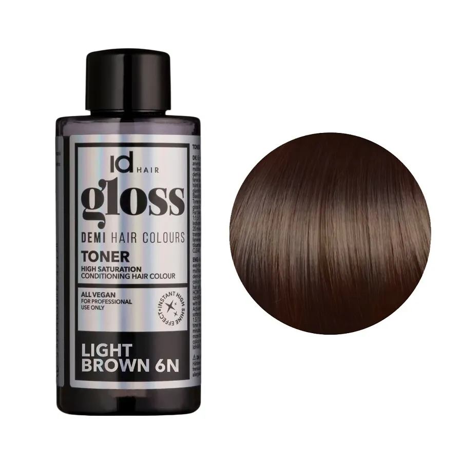 6N (6/0) Light Brown Деміперманентна рідка фарба для волосся без аміаку, 75 мл Demi Hair Colours TONER GLOSS ID Hair