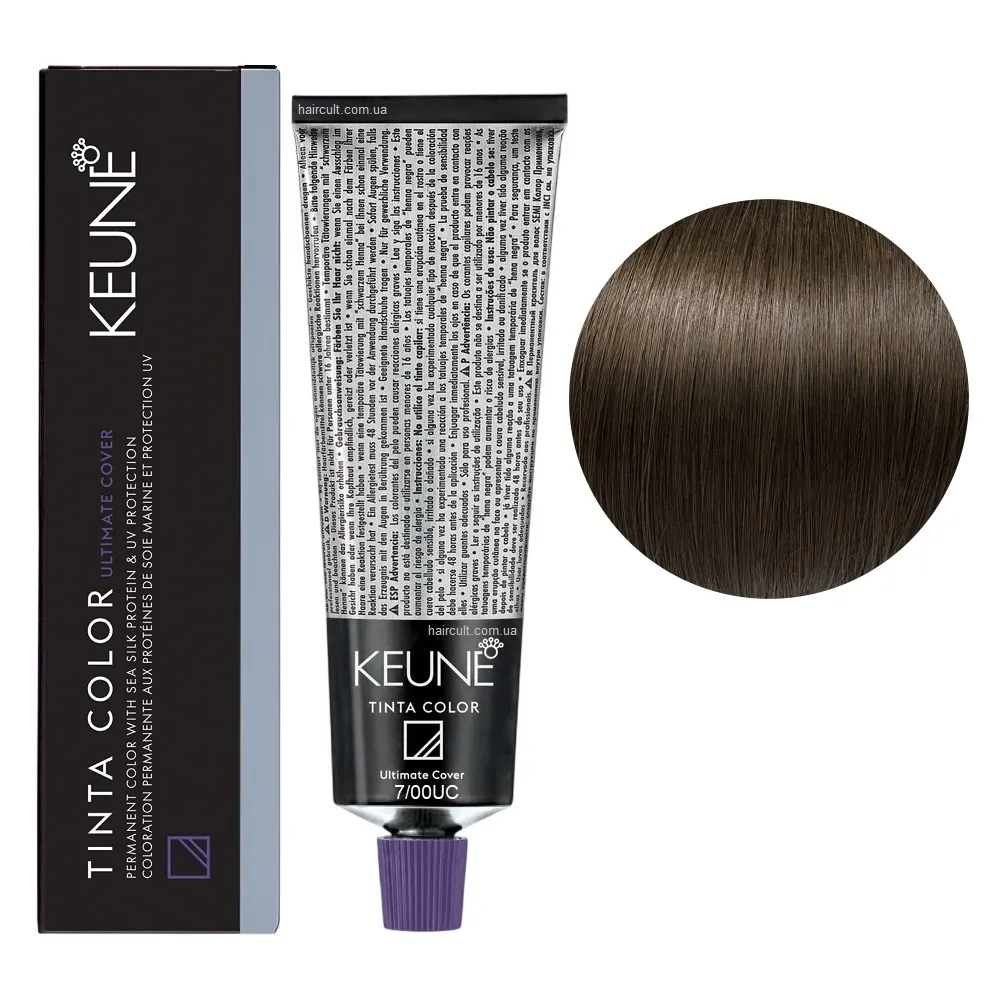 Tinta Color Keune - це преміальна перманентна крем-фарба, яка забезпечує 100% покриття сивини, інтенсивний колір та ефект догляду після кожного фарбування. Унікальна формула з протеїнами шовку глибоко кондиціонує волосся, зберігає його м’якість і блиск. Завдяки вмісту бджолиного воску, фарба не тече та рівномірно розподіляється по всій довжині. Фарба доступна в широкій палітрі - від природних тонів до виразних і насичених кольорів. Підходить для будь-якого типу волосся - як натурального, так і фарбованого. Спеціальні серії Tinta Color: Переваги фарби Keune Tinta Color: 7/00 UC Середній блондин натуральний інтенсивний Фарба перманентна для волосся, 60 мл Permanent Color TINTA COLOR KEUNE Застосування: 7/00 UC Середній блондин натуральний інтенсивний Фарба перманентна для волосся, 60 мл Permanent Color TINTA COLOR KEUNE Змішайте з окислювачем Cream Developer TINTA KEUNE у пропорції 1:1. Важливо! Продукт для професійного використання. Уважно ознайомтесь з офіційною інструкцією.Фарба перманентна для волосся Permanent Color Sea Silk Protein TINTA COLOR KEUNE