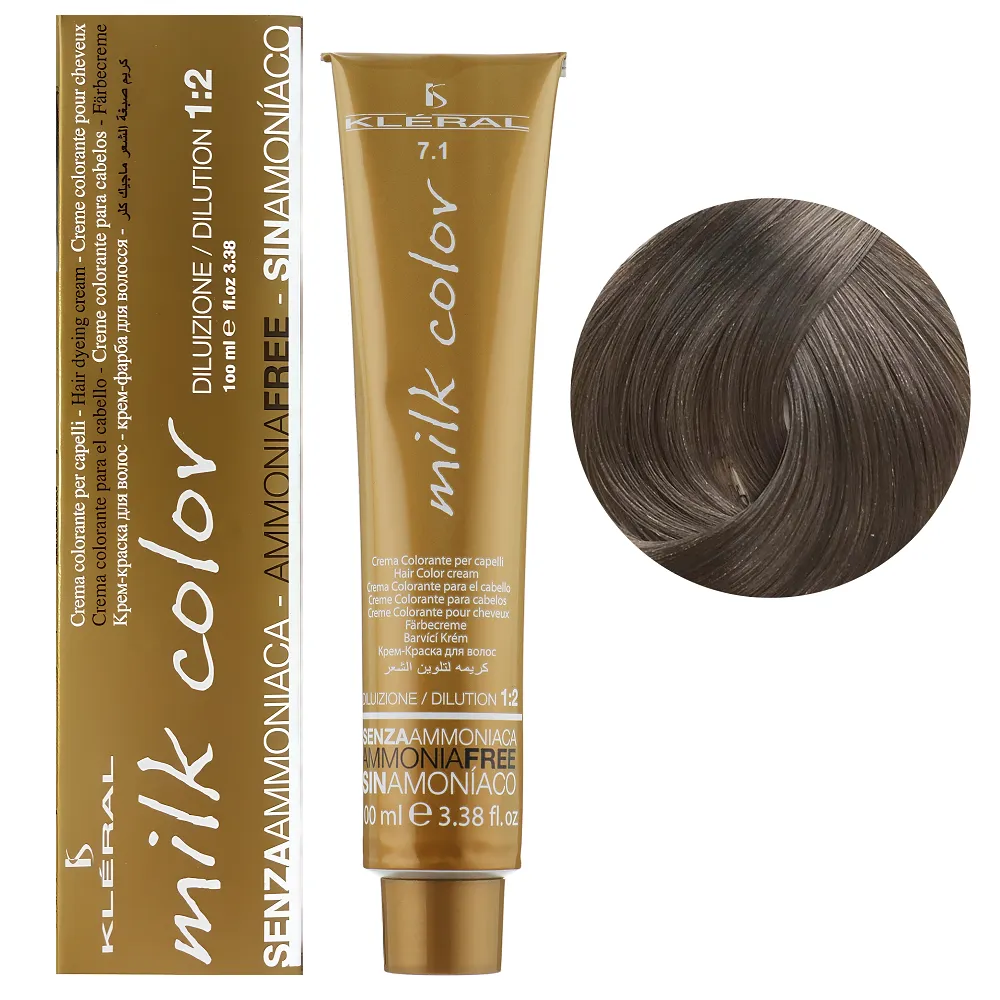 Безаміачна фарба Milk Color, розроблена італійською компанією Kleral System, представлена більше ніж 40 відтінками. Прекрасно забарвлює волосся, у тому числі і сиве (якщо сивини не більше 50%) у близькі до натуральних кольорів. Завдяки своєму щадному складу і компонентам, що доглядають, не пошкоджує структуру волосся, надає їм блиск і м`якість. Milk Color ідеально підходить для пошкодженого волосся. Тюбик містить 100 мл фарби та розрахований на 2 повні нанесення. Рекомендований окислювач - 20-vol стабілізований перекис водню. Для збільшення освітлювальної дії, використовуйте стабілізований перекис водню в 30- або 40-vol емульсії. Особливості продукту: 7/1 Полпелясто-русявий Крем-фарба для волосся перманентна без аміаку, 100 мл Milk Color KLERAL System Застосування: 7/1 Полпелясто-русявий Крем-фарба для волосся перманентна без аміаку, 100 мл Milk Color KLERAL System Продукт призначений для професійного використання. Уважно ознайомтесь з інструкцією.Крем-фарба для волосся перманентна без аміаку Milk Color KLERAL System