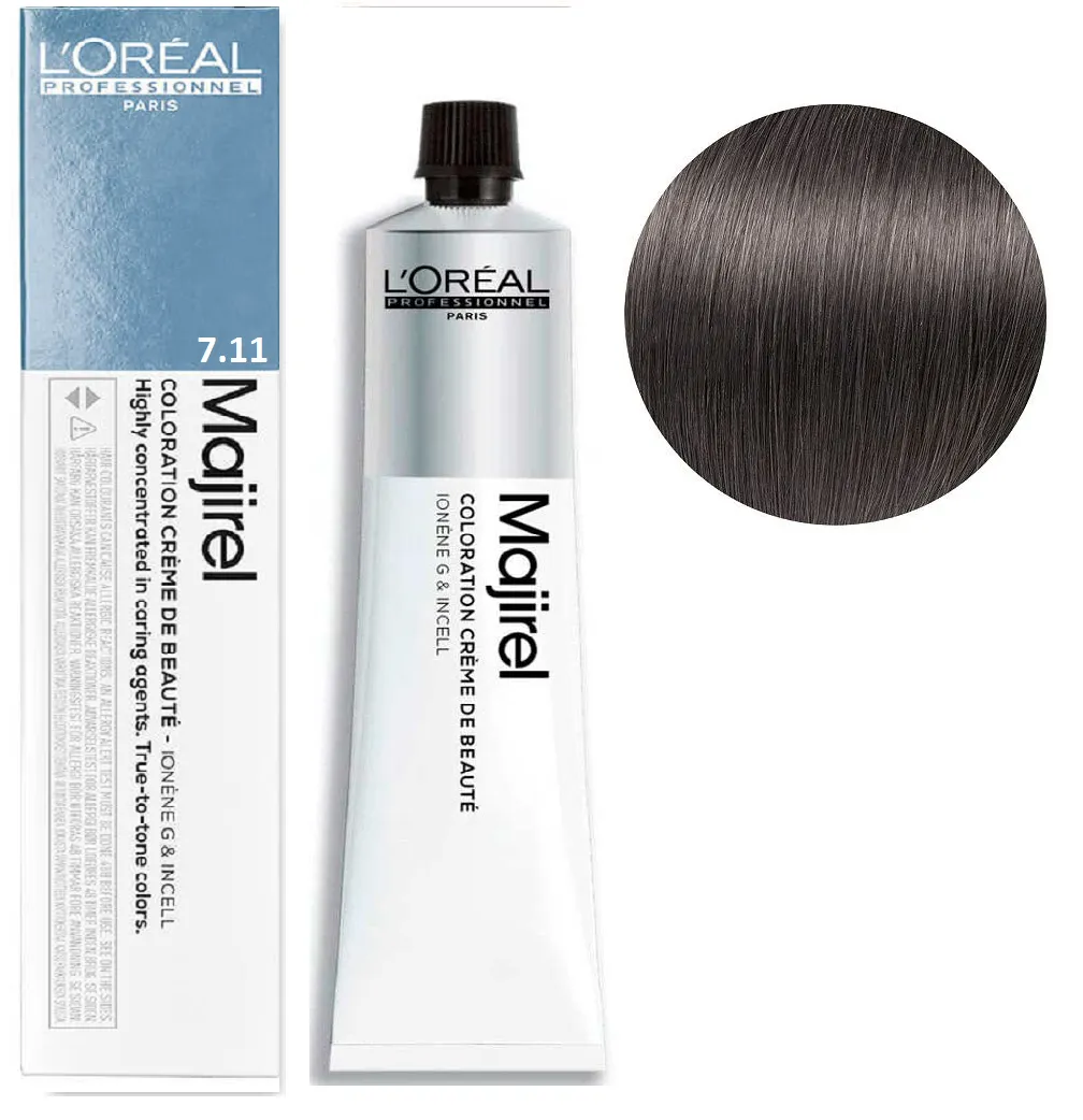 Majirel від L’Oreal Professionnel - це професійна стійка крем-фарба, створена для майстрів, які цінують точність, передбачуваність і розкішний результат фарбування. Формула розроблена з урахуванням останніх досягнень у сфері колористики, щоб забезпечити насичений колір, ідеальне покриття сивини та неперевершений блиск. Завдяки технології Ionene G™ та Incell™ волосся зберігає здорову структуру навіть після інтенсивного фарбування. Активні компоненти проникають у глибину волокна, зміцнюють кутикулу та підвищують стійкість кольору. Результат - шовковисті пасма з глибоким, багатовимірним відтінком. Особливості продукту: 7/11 Блондин попелястий інтенсивний Фарба для волосся стійка, 60 мл Majirel L`Oreal Professionnel (оновлений формат) Застосування: 7/11 Блондин попелястий інтенсивний Фарба для волосся стійка, 60 мл Majirel L`Oreal Professionnel (оновлений формат) Пропорції змішування з окислювачем: Час витримки залежить від обраної фарби та бажаного результату фарбування. Фарба Majirel від L’Oreal Professionnel призначена для професійного використання! Уважно ознайомтесь з інструкцією.Фарба для волосся стійка Majirel L`Oreal Professionnel (оновлений формат - 60 мл)