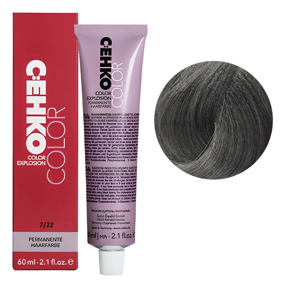 7/22 Блондин попелястий інтенсивний Стійка перманентна крем-фарба для волосся, 60 мл Permament Hair Color EXPLOSION C:EHKO
