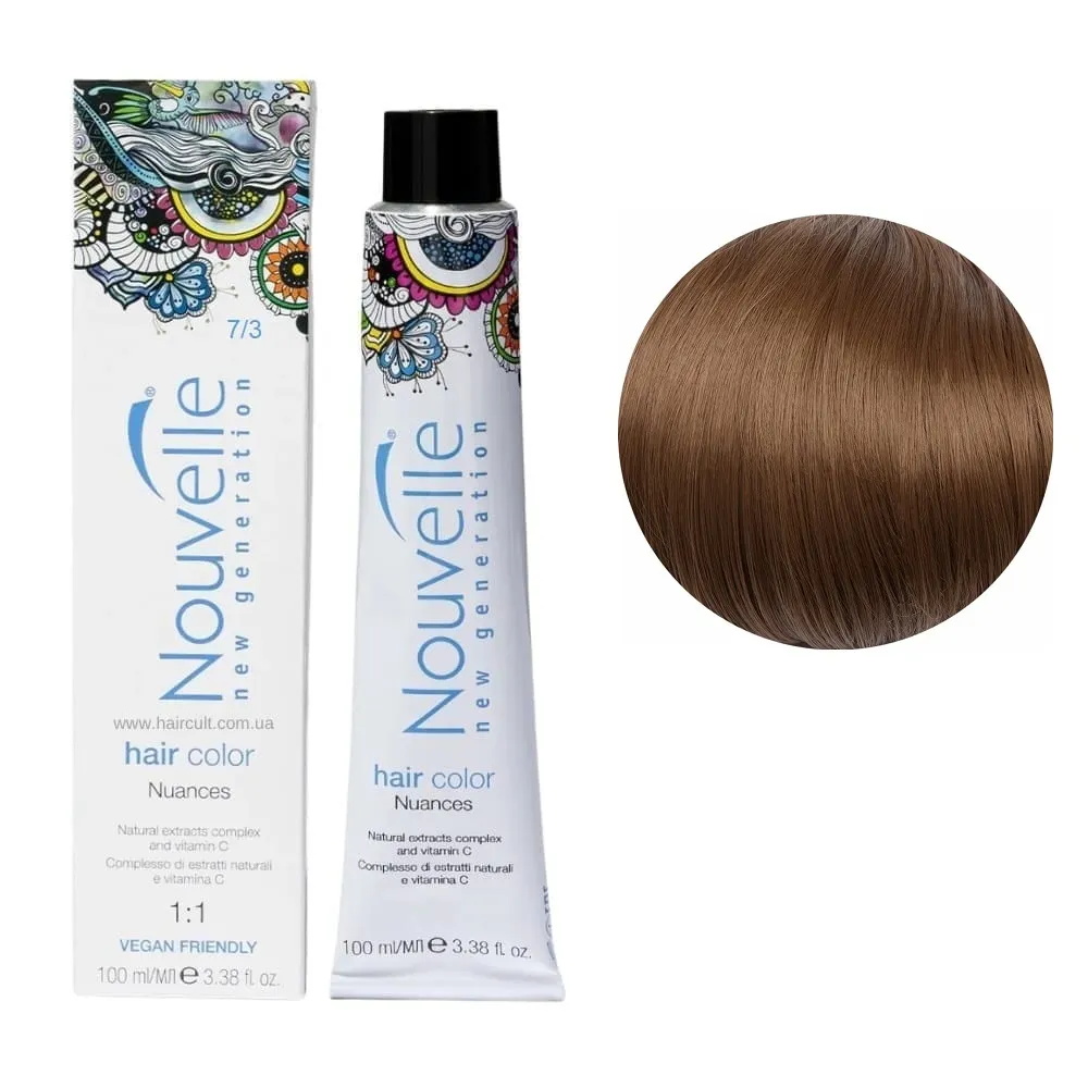 Nouvelle New Generation Hair Color - це стійка аміачна крем-фарба для волосся, яка забезпечує насичений, тривалий колір і професійний результат. Продукт пропонує широку палітру, що включає натуральні, яскраві, модні та ультрасвітлі тони. Особливості продукту: 7/3 середньо-золотистий русявий Фарба для волосся перманентна, 100мл Permanent Hair Color Nouvelle Застосування: 7/3 середньо-золотистий русявий Фарба для волосся перманентна, 100мл Permanent Hair Color Nouvelle Фарбу змішують із окислювачем Nouvelle Developer Cream Peroxide (1,5%, 3%, 6%, 9% або 12%) у відповідних пропорціях залежно від бажаного ефекту: тонування, освітлення чи зафарбовування сивини. Суміш наноситься на сухе, немите волосся із витримкою 25-50 хвилин, залежно від інтенсивності кольору. Після фарбування рекомендується використовувати шампунь і доглядові засоби з серії Nouvelle Color Glow для збереження кольору і здоров’я волосся.Фарба для волосся перманентна Permanent Hair Color Nouvelle